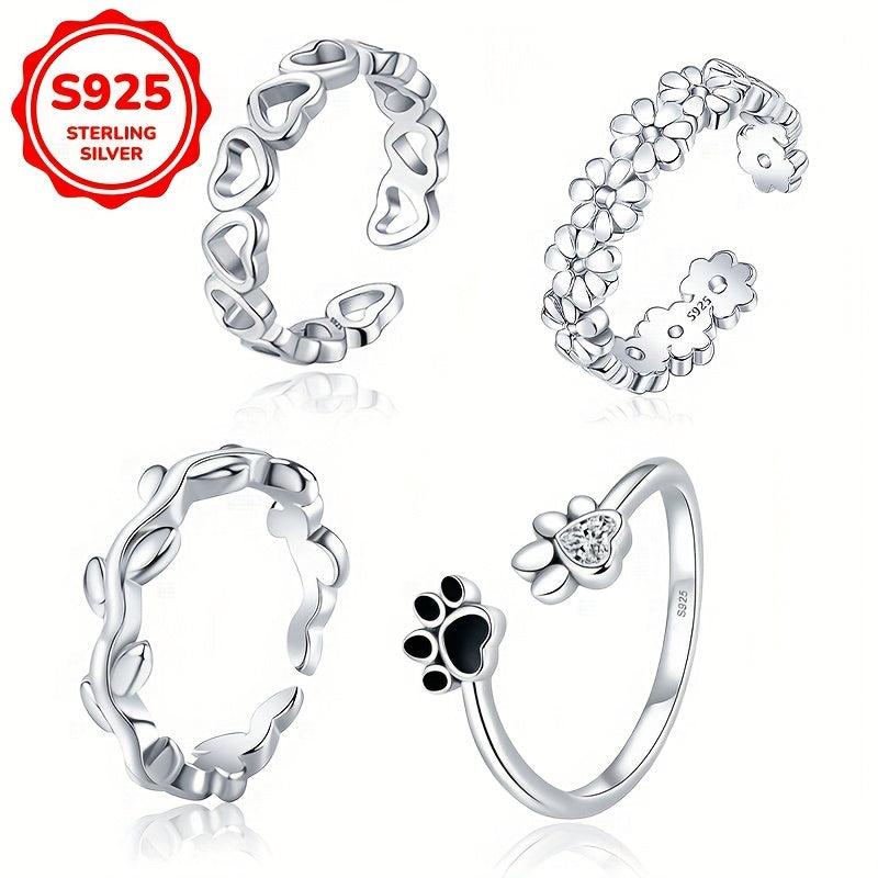 This set includes four foot rings with micro synthetic zirconia stones in a 925 silvery setting. Perfect for daily wear, beach holidays, casual outings, and dates.