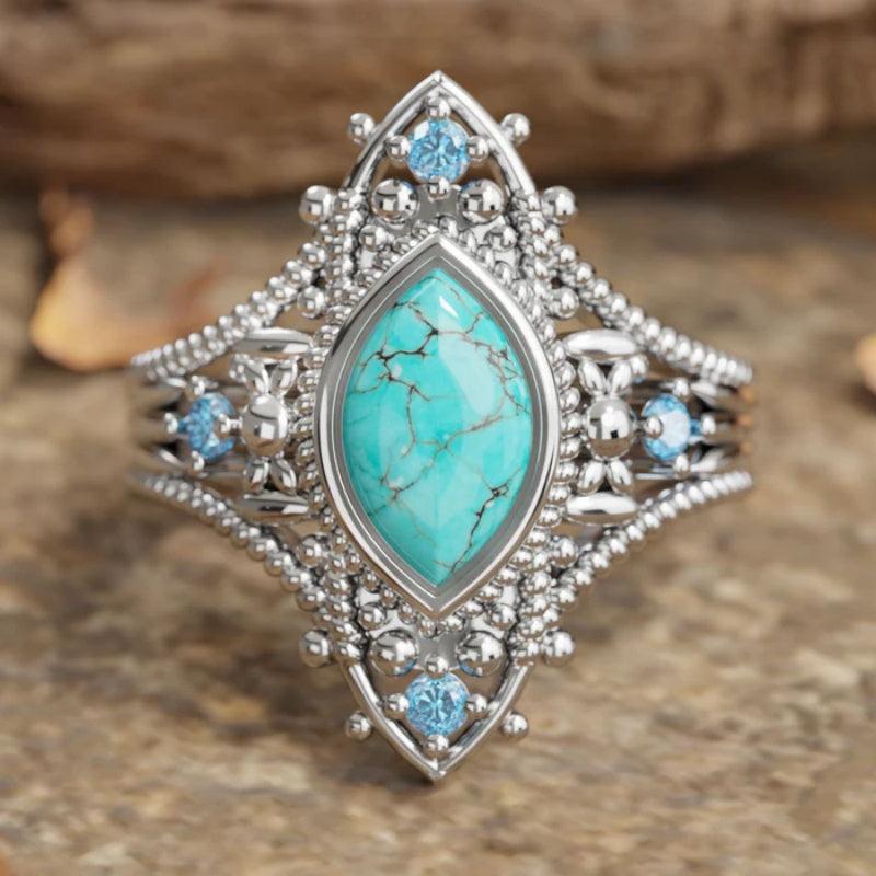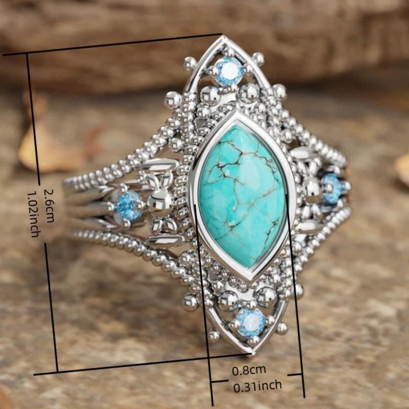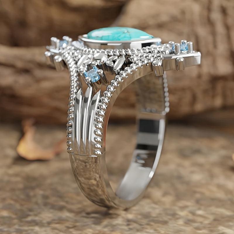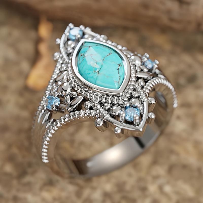 Add a touch of bohemian flair to your outfit with this retro ring featuring synthetic turquoise inlays. Perfect for banquets or vacations.