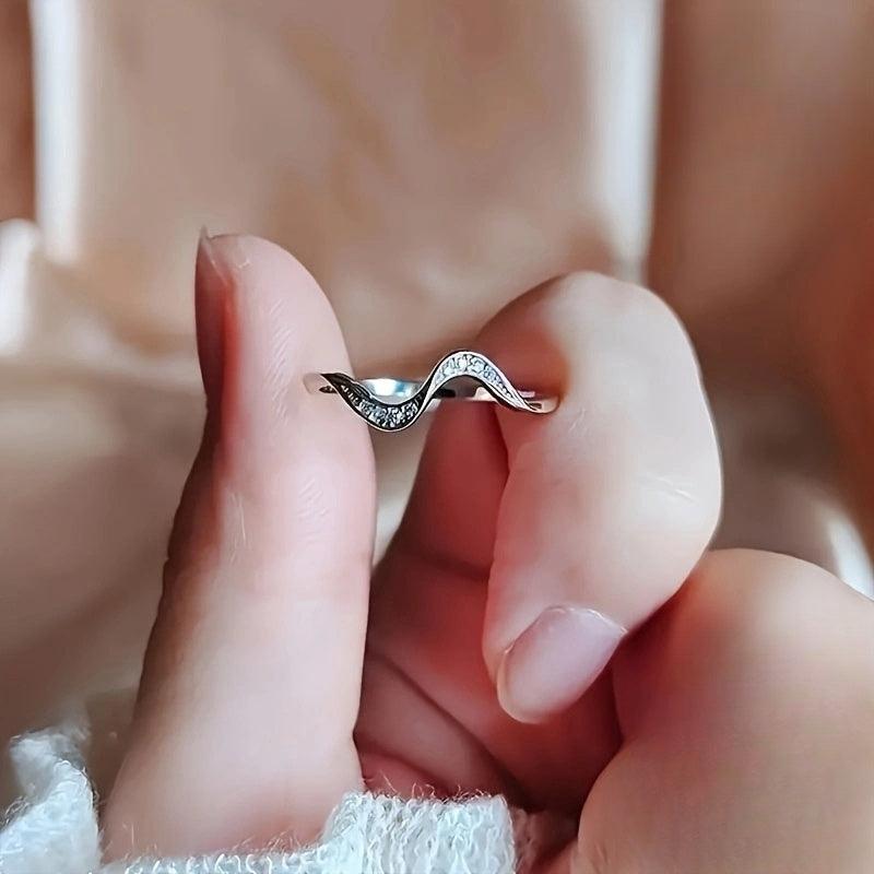 This minimalist wave pattern ring is designed with synthetic zirconia stones making it perfect for daily wear, parties, or as a gift for a loved one.
