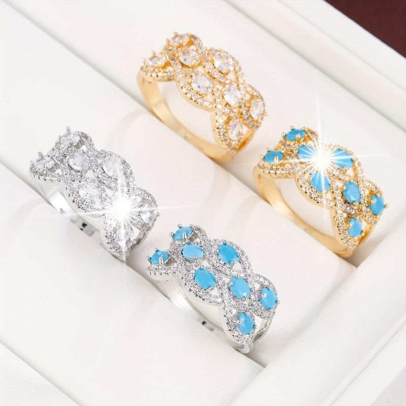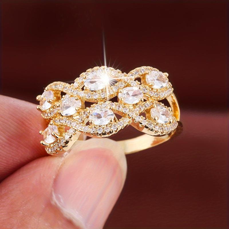 Elegant women's ring crafted with double row twisted copper and zirconia, forming a pretzel shape design.