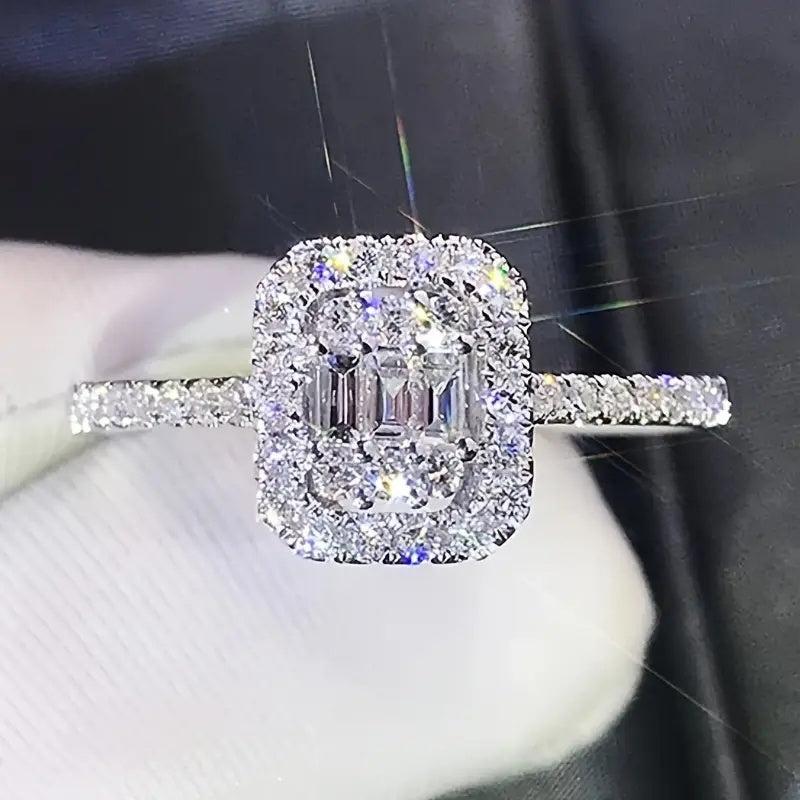 Elegant and stylish women's engagement ring featuring synthetic zirconia. Crafted with K plated copper for a luxurious look.