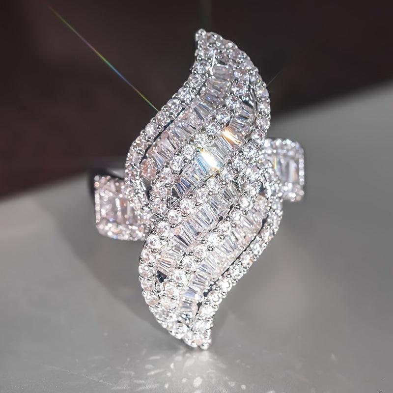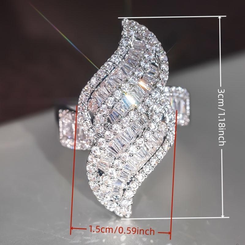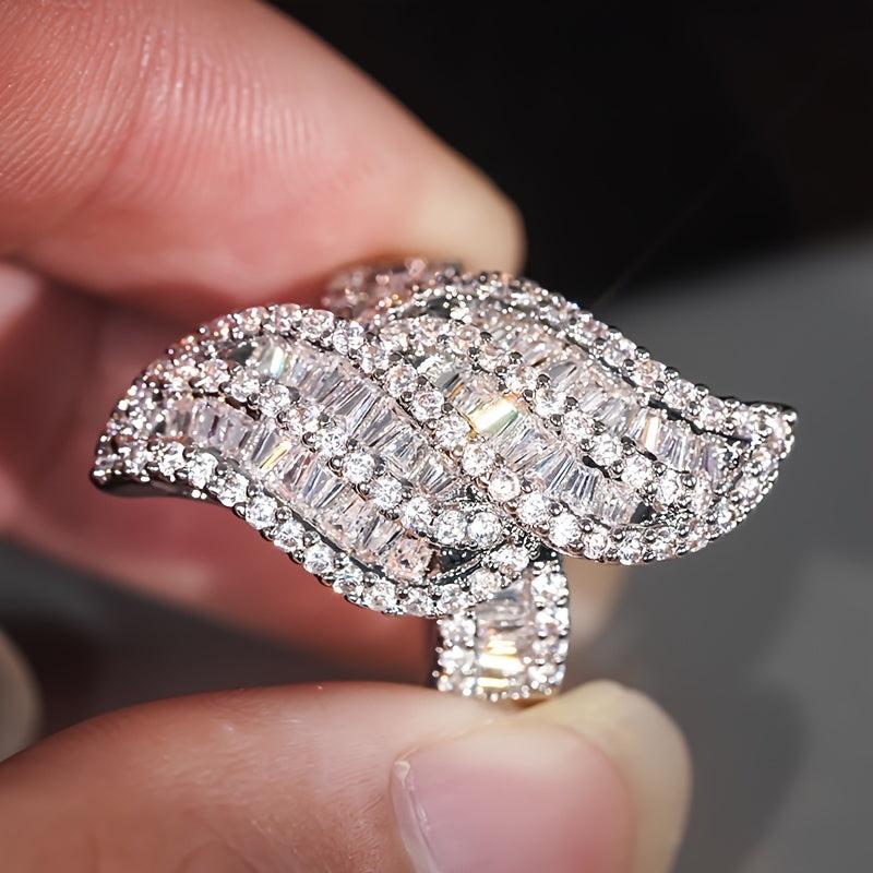 Shine on your special day with this sparkling zirconia leaf wedding ring. It features a golden plated design that adds a touch of elegance. Perfect for April birthdays and as an anniversary gift.