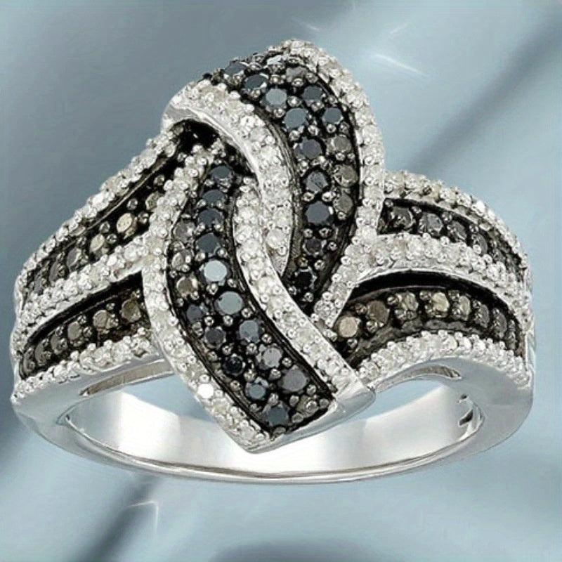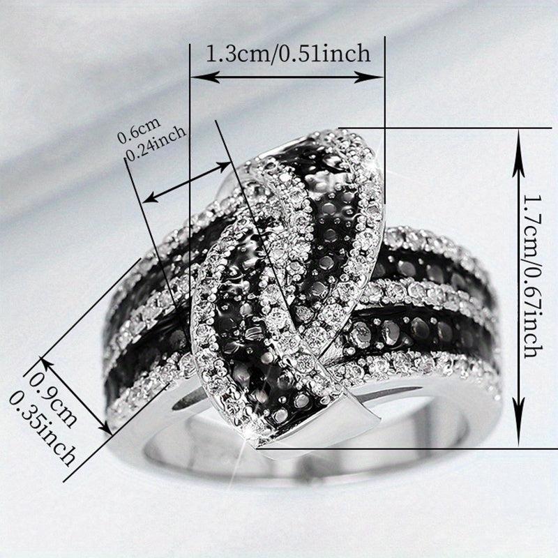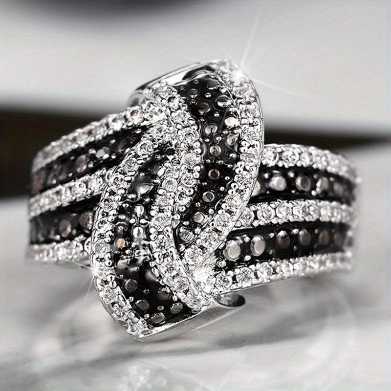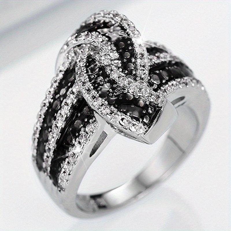 Elegant women's ring featuring synthetic zirconia and clear gemstones intertwined on a durable band. Perfect for parties, weddings, or as a birthday gift. Ideal for formal occasions.