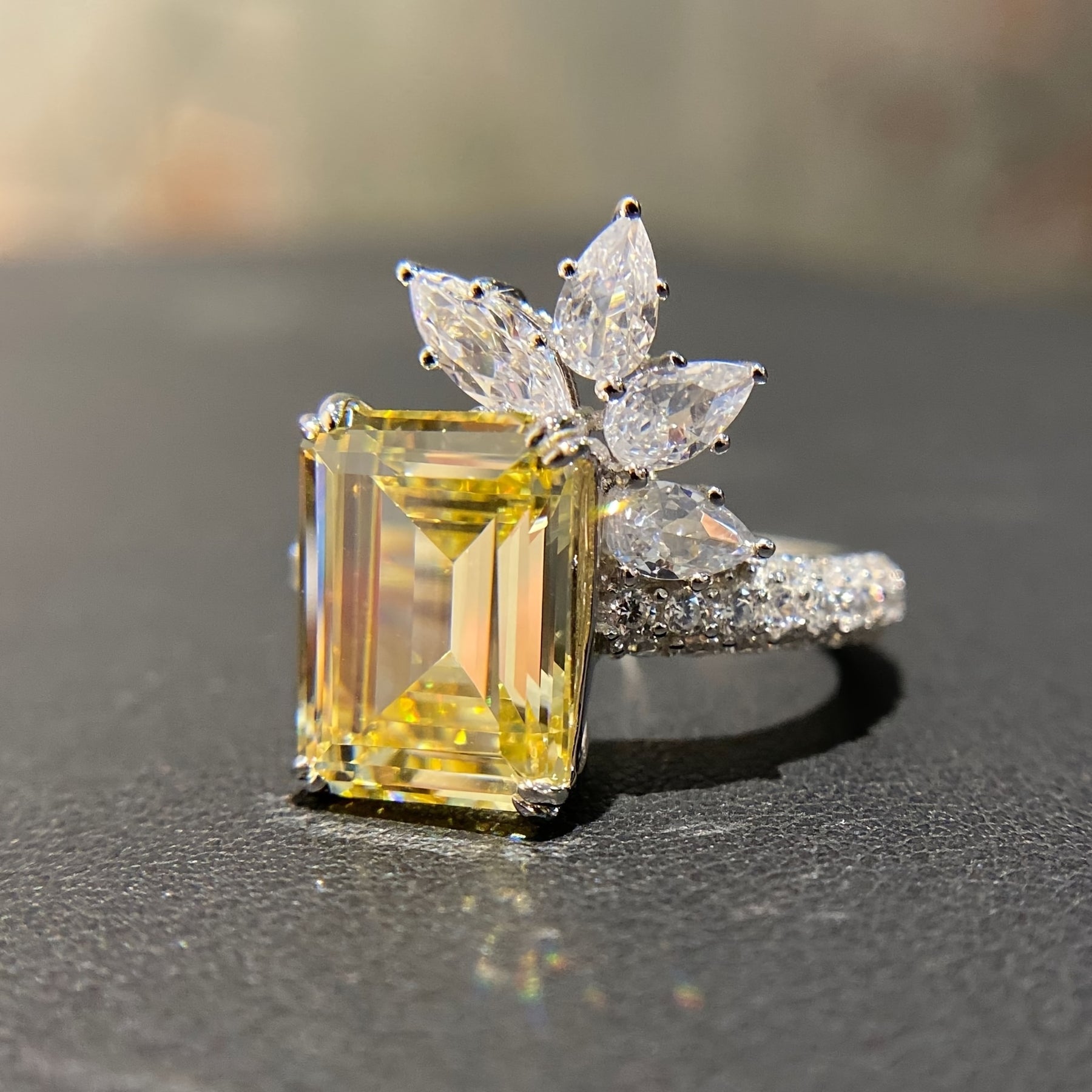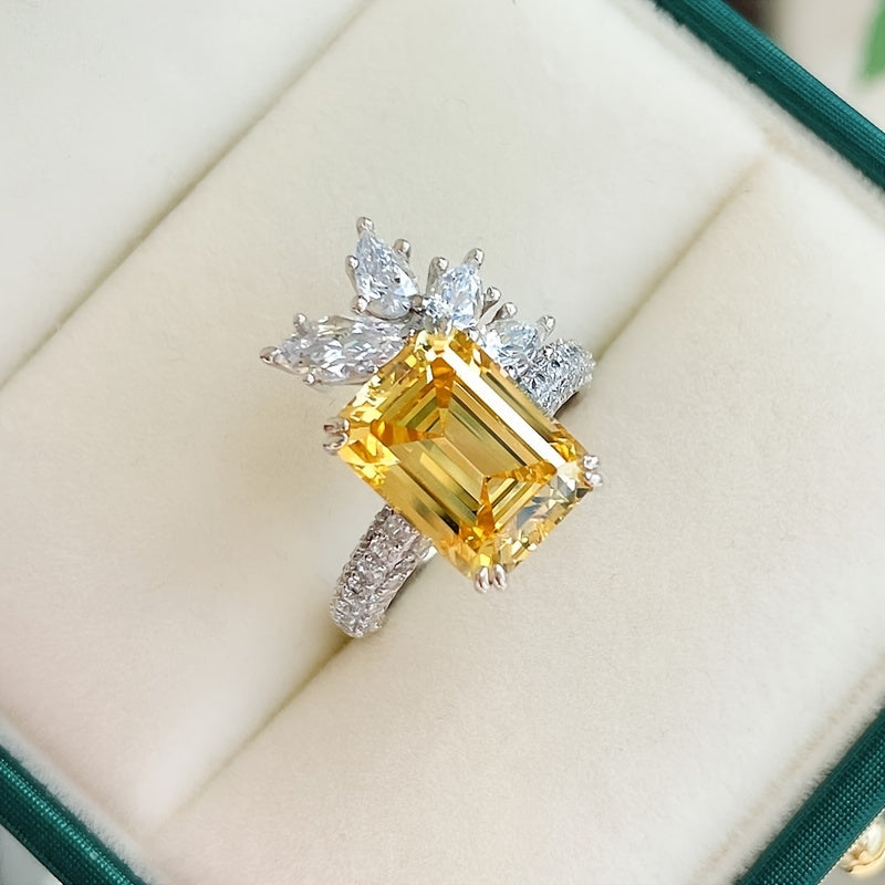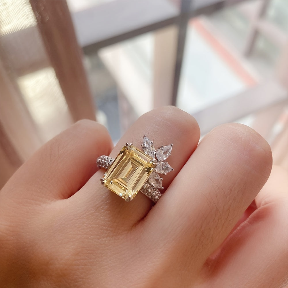 Add a touch of elegance to your look with this yellow square zircon ring. Perfect as women's jewelry or accessory.