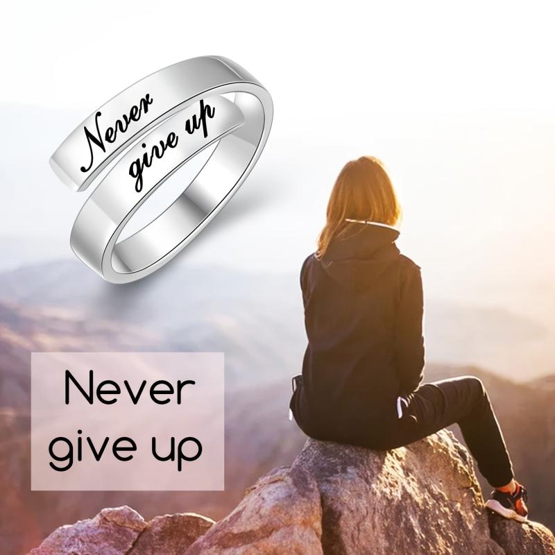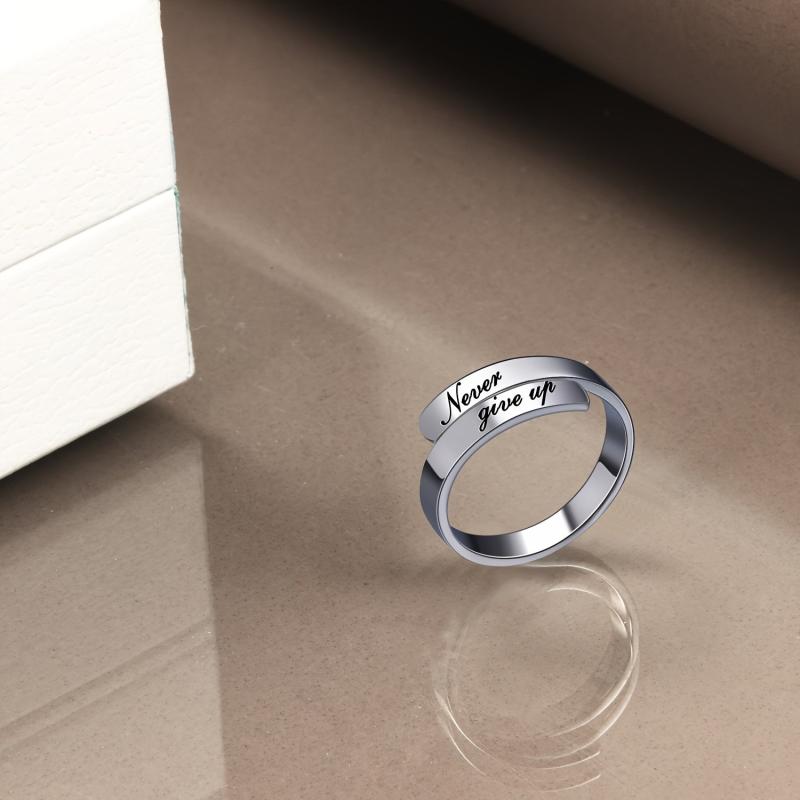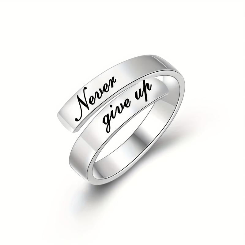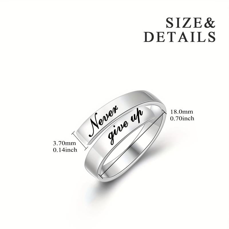 This YFN 925 silver open ring features a stylish 'Never Give Up' inscription, making it ideal for daily wear or gifting. Suitable for both men and women, this inspirational piece is perfect for adding a meaningful touch to your jewelry collection.