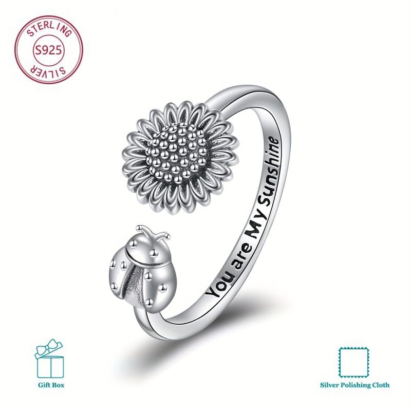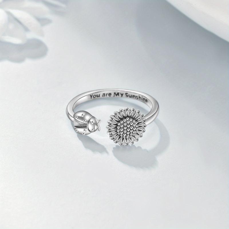 Add a touch of nature-inspired beauty to your look with this sunflower ladybug ring. Made of sterling silver, this vintage adjustable ring is the perfect jewellery piece for women and girls.