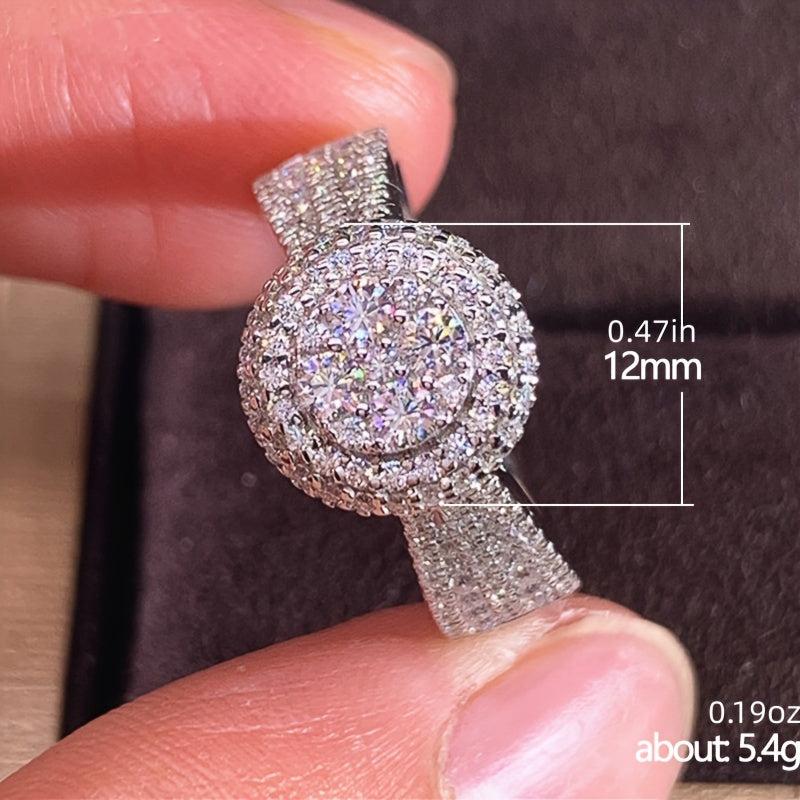 This elegant ring features a round cut center stone surrounded by baguette accents, adding a touch of glamour to any outfit. Perfect for weddings, parties, or casual wear.
