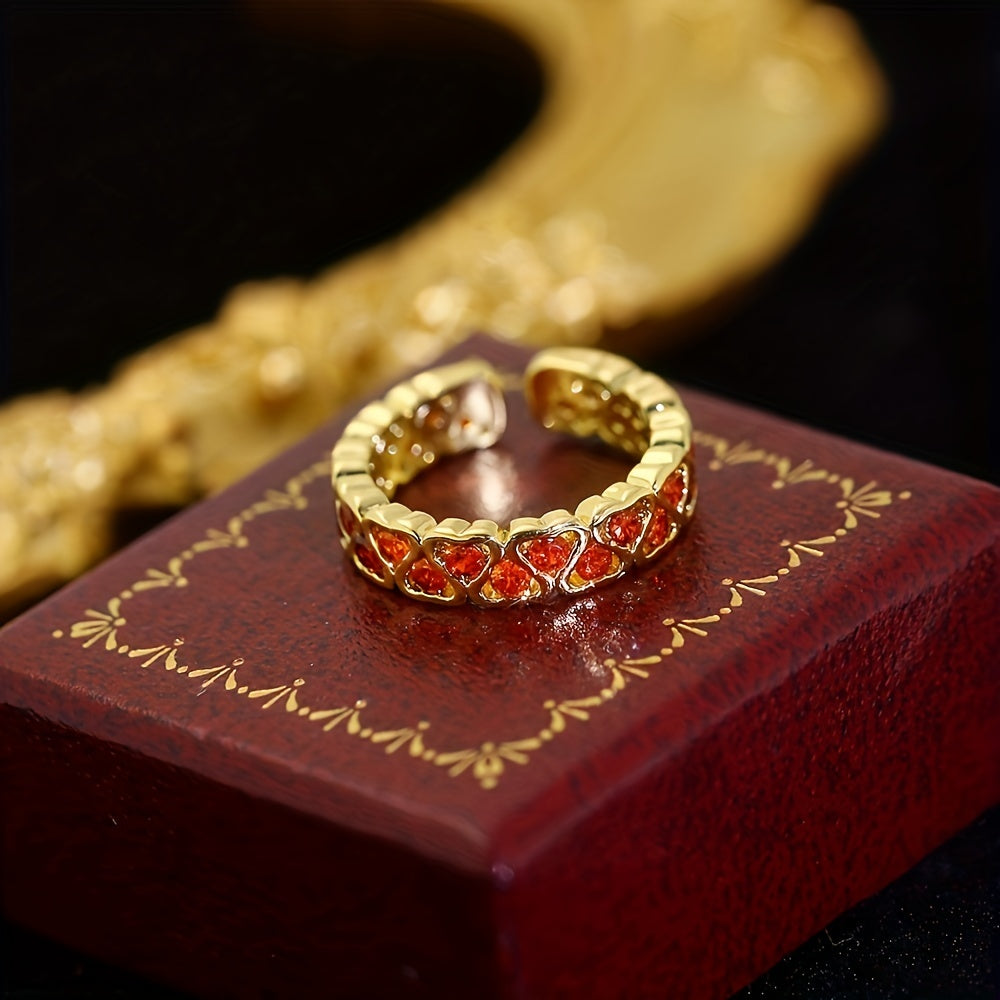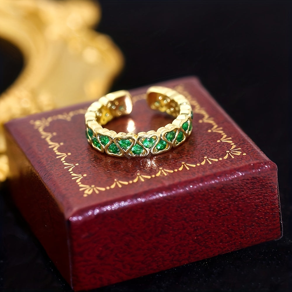 Add a touch of elegance with this zinc alloy ring featuring a red and green heart-shaped cubic zirconia. Perfect for parties and special occasions.