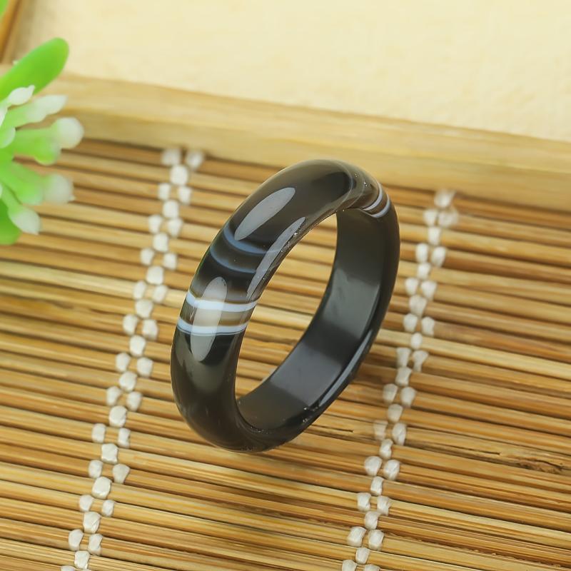 Vintage style natural agate ring featuring stripes and a smooth polished surface. This men's accessory is the perfect holiday gift for any occasion.