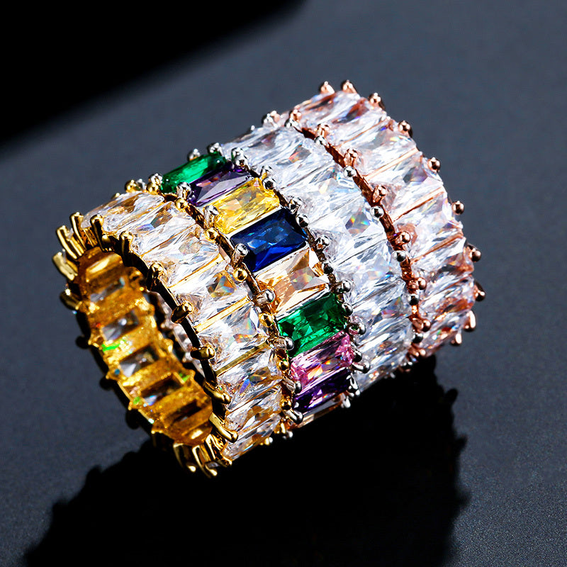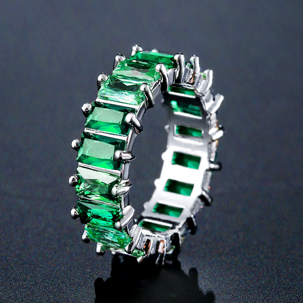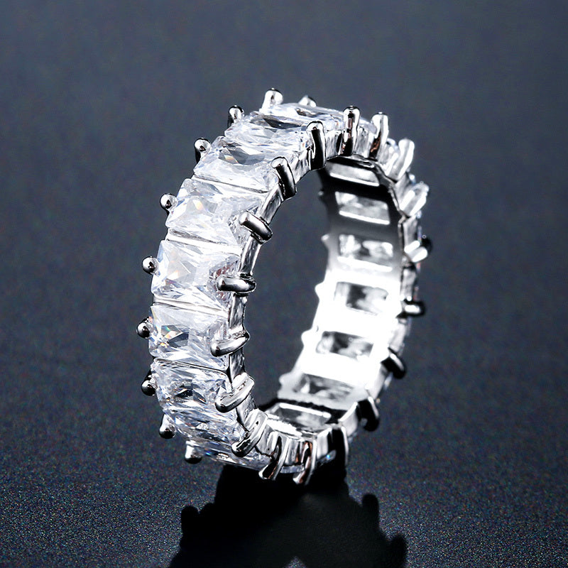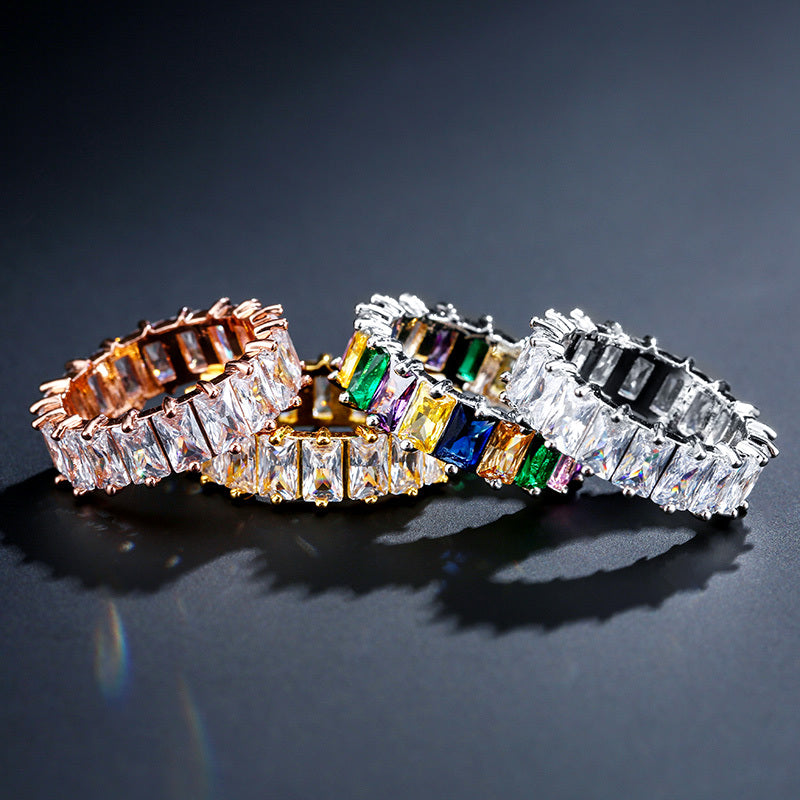 Elegant zircon band ring crafted from 18K plated copper, features a square shape design. Perfect for women and girls.
