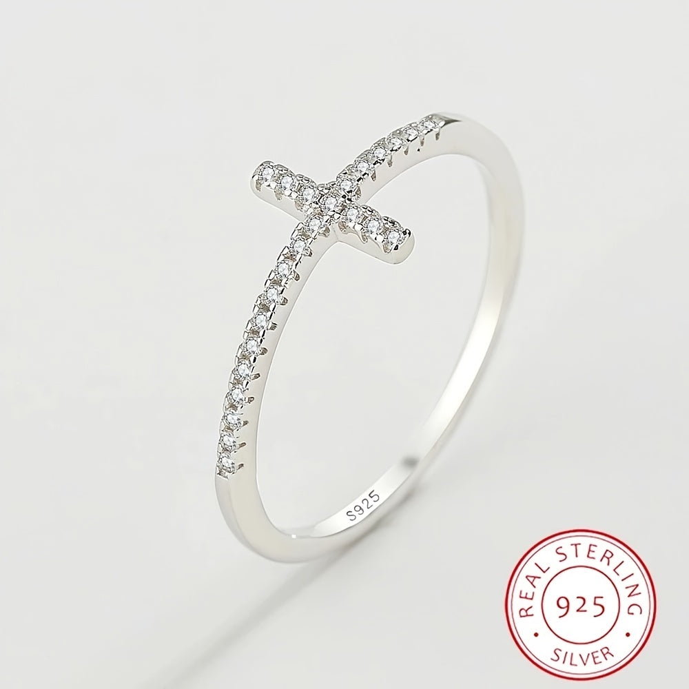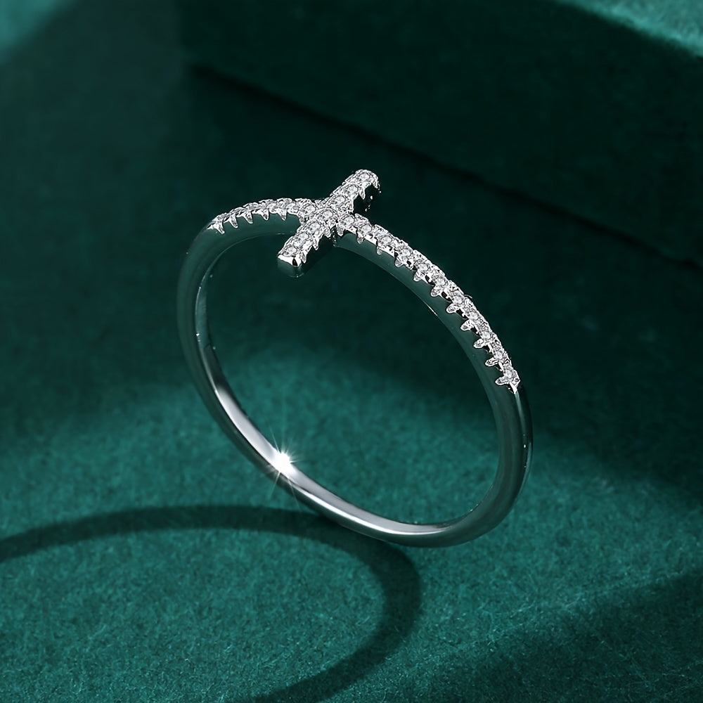 Add a touch of elegance to your party or banquet look with this stunning cross ring crafted from 925 silver and inlaid with sparkling zircon stones.