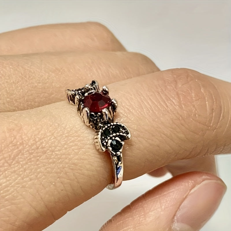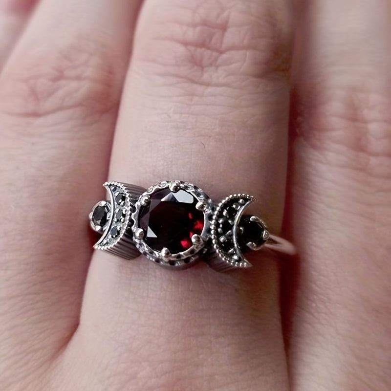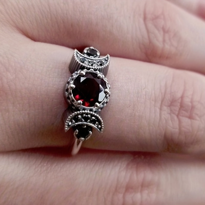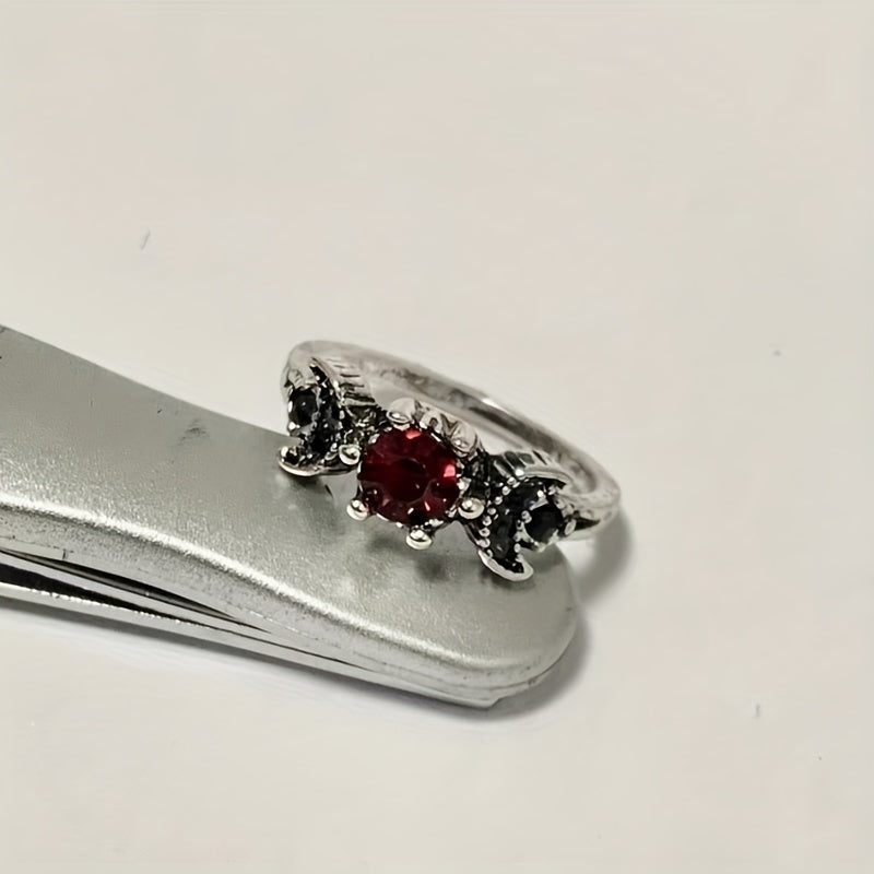 Elegant zircon ring featuring a moon design and a ruby stone, perfect for men's style.