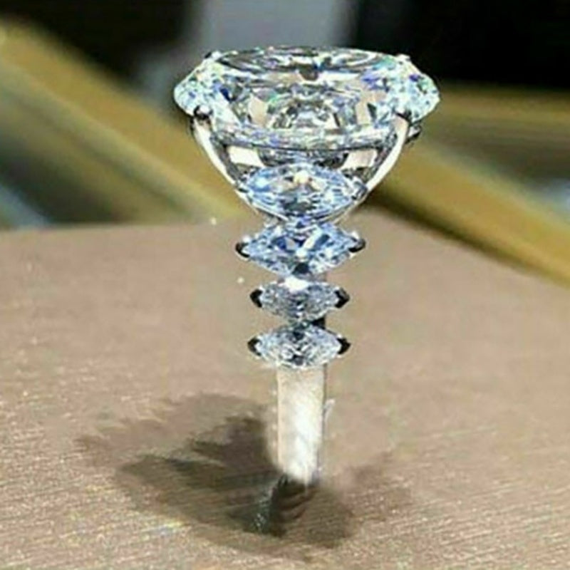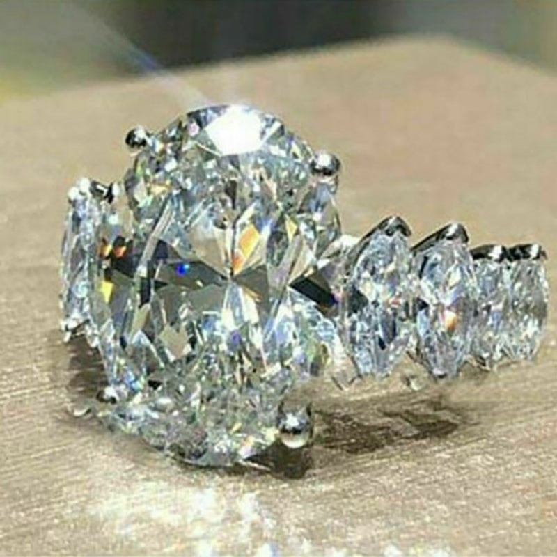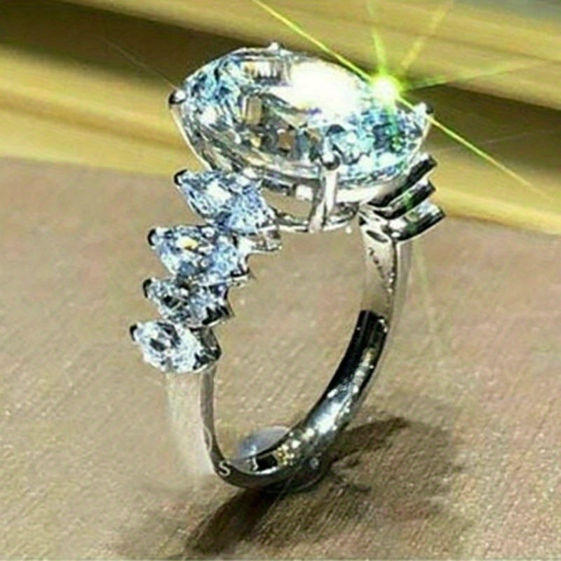 This stunning zircon ring features an oval cut zircon stone inlaid within a beautiful design. Perfect for a romantic wedding or princess bride party, this jewelry piece makes a thoughtful gift for any occasion.