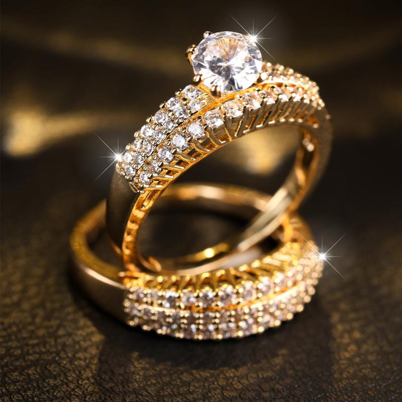 Enhance your bridal look with this stunning set of rings featuring zirconia stones. Perfect for engagement, wedding, and special occasions.