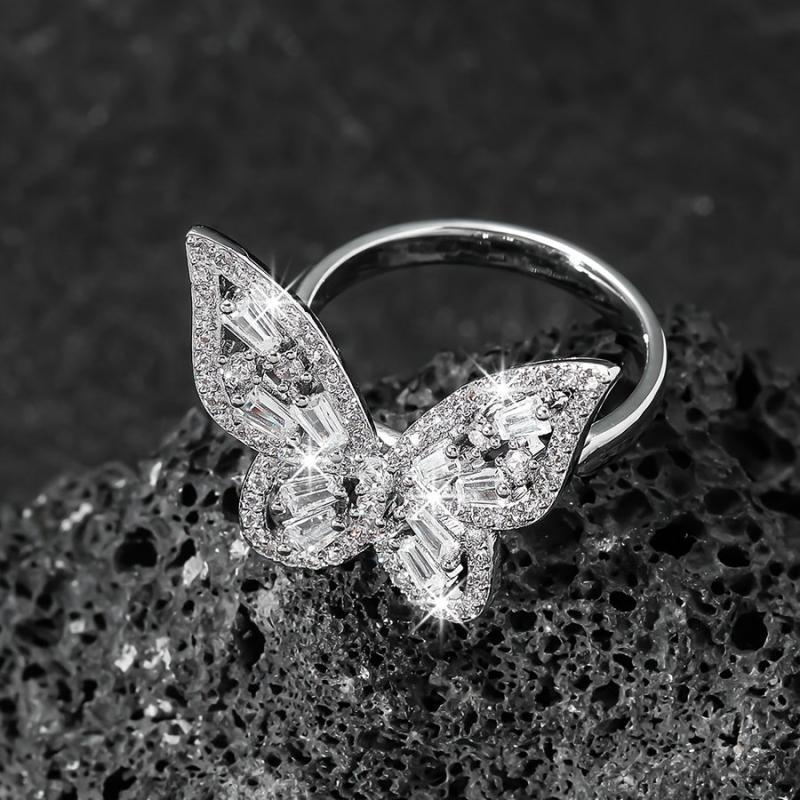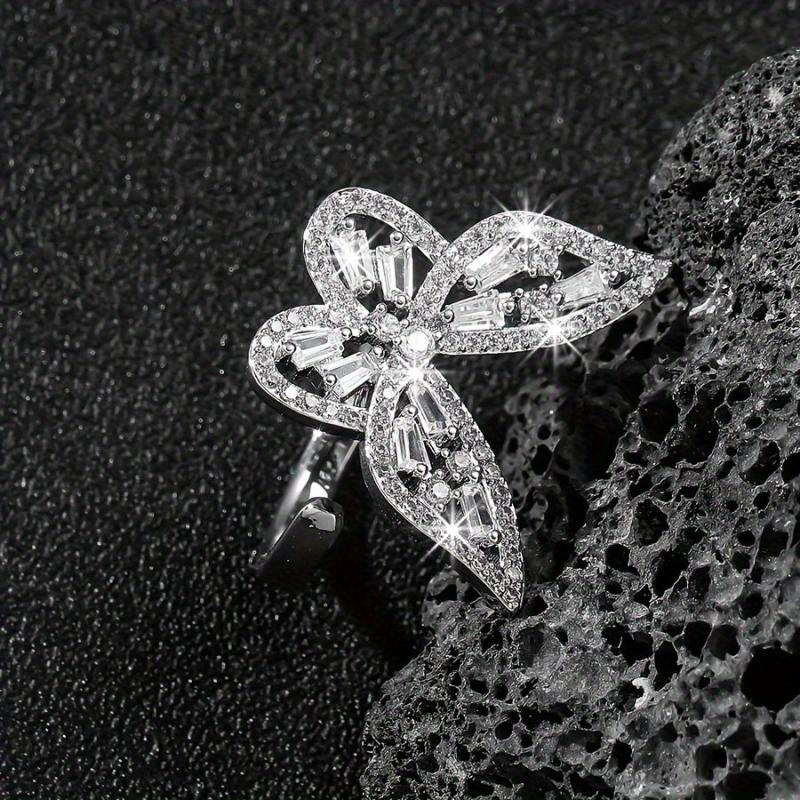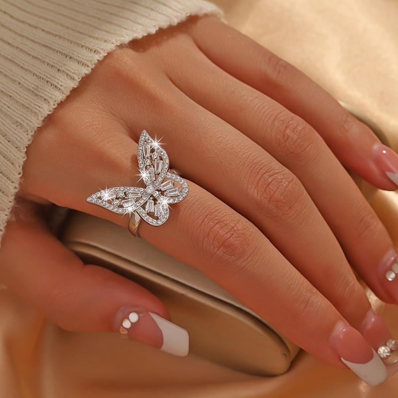 This zirconia butterfly ring is perfect for parties and special occasions. Its open design and sparkling zirconia stones add a touch of elegance and charm to any outfit.