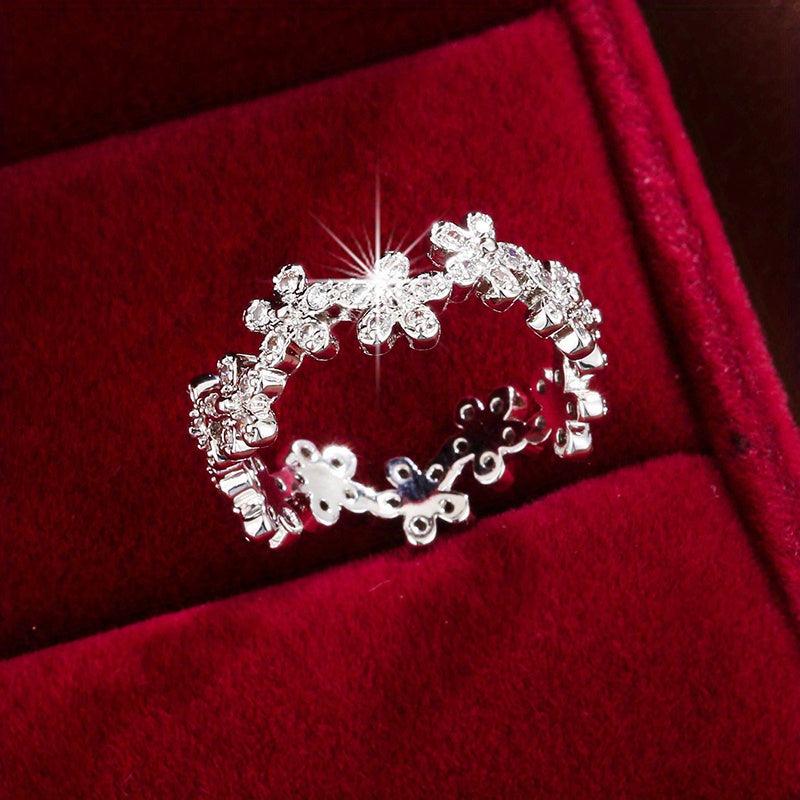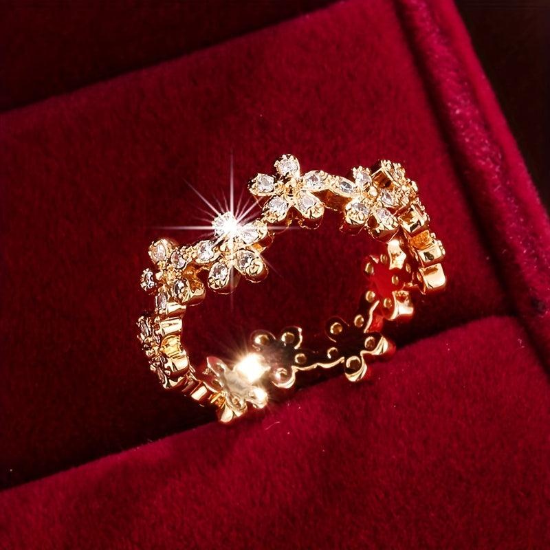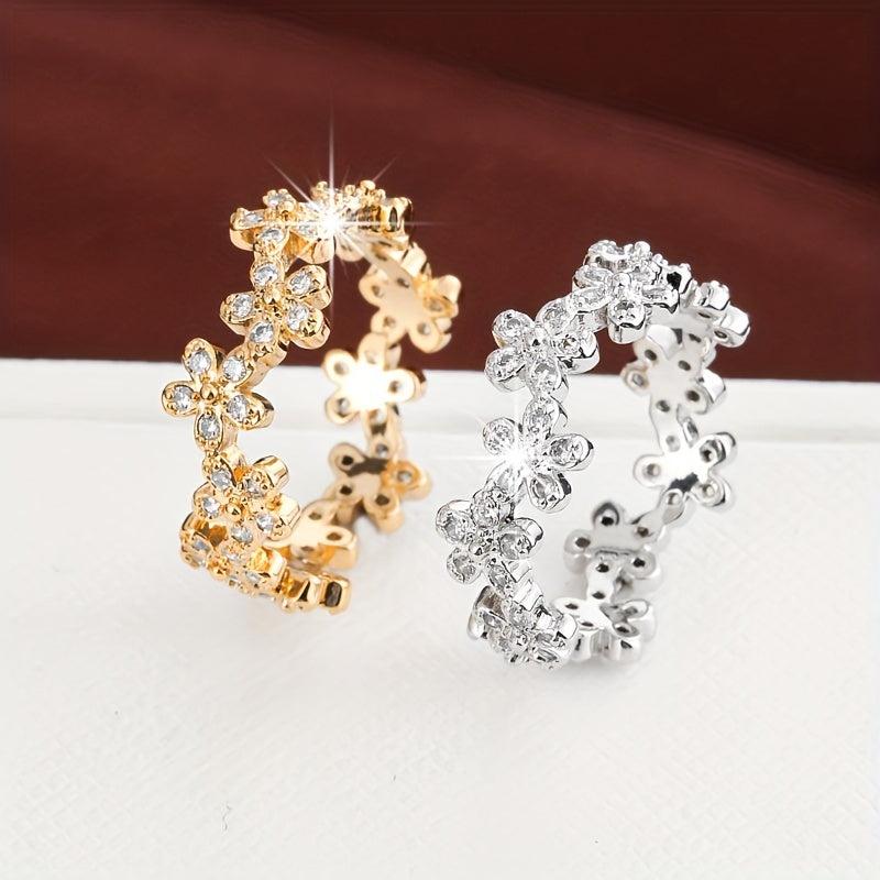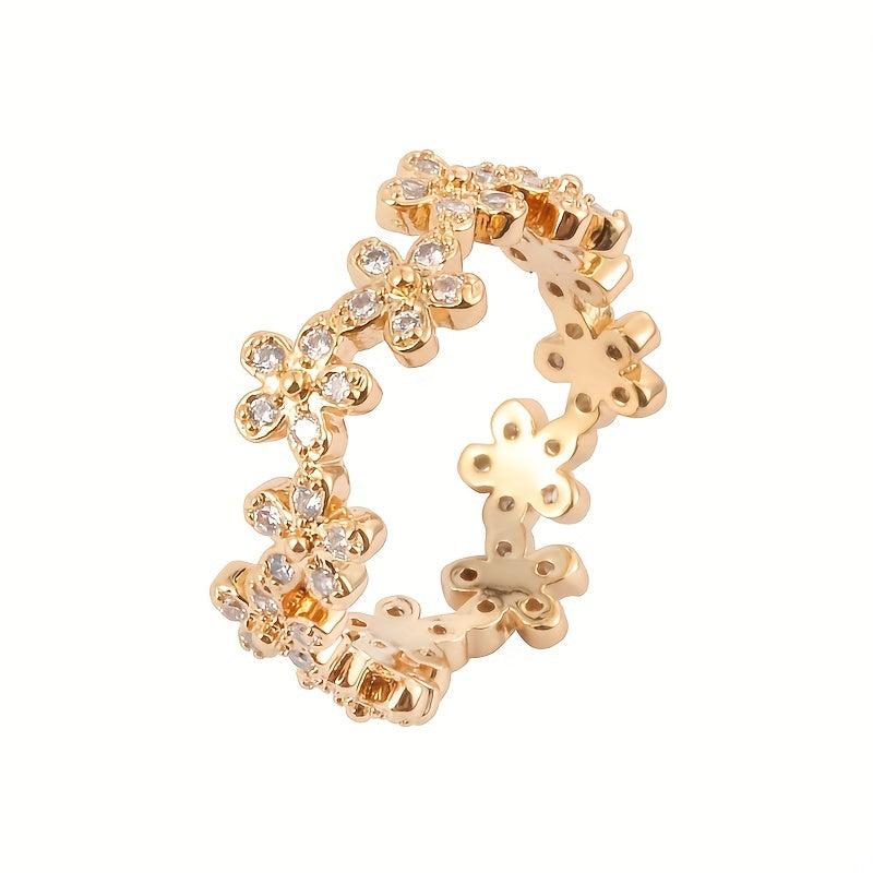 This beautiful ring features a chrysanthemum design with a synthetic zirconia inlay. It adds a touch of elegance to any outfit.