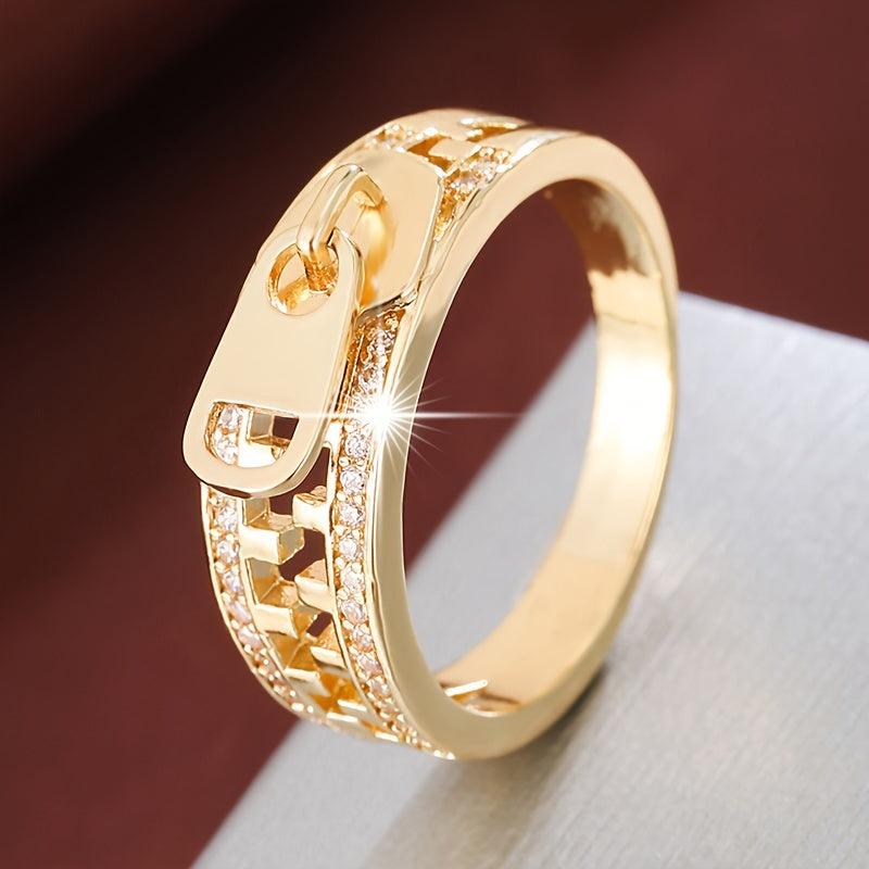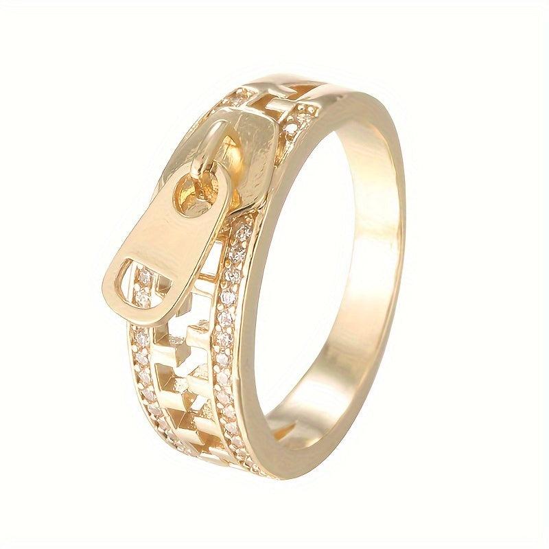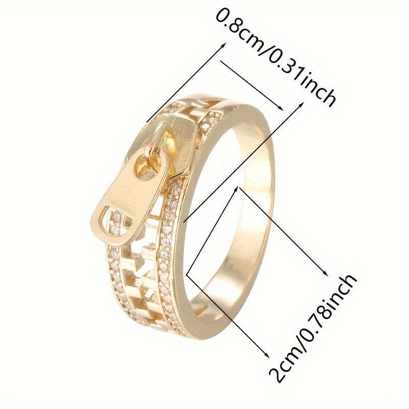 Elegant and stylish ring designed with a unique zipper embedded with sparkling zirconia stones, perfect for adding a touch of glamour to any outfit.