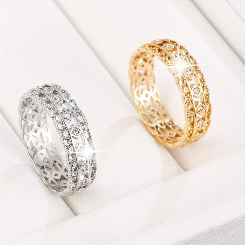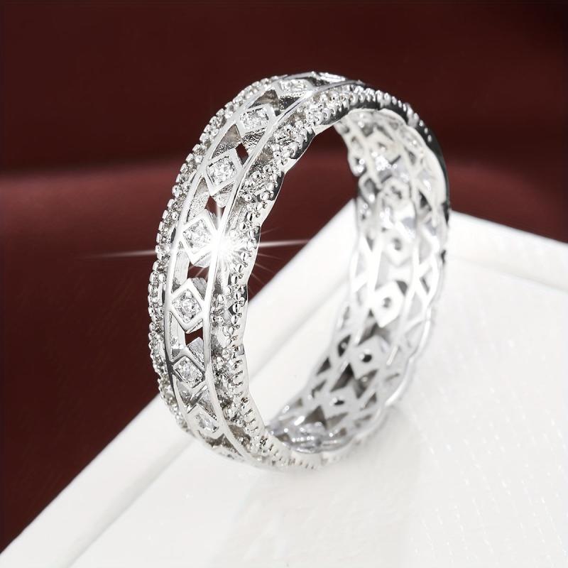 This stunning ring features a hollow diamond shape with synthetic zirconia. It's perfect for gift-giving and parties, suitable for all-season wear.