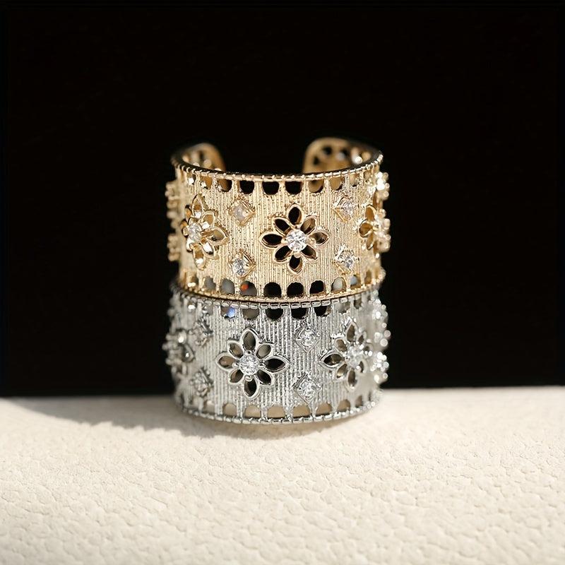 Elegant hollow brass earrings featuring zirconia inlay, perfect for gifting, dining, and daily wear.