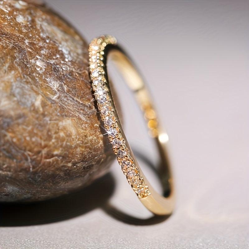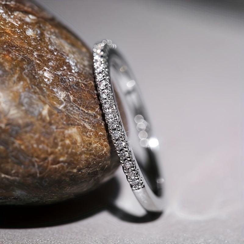 This minimalist micro set zirconia ring is perfect for brides on their engagement and wedding day. It adds a touch of elegance to any outfit, making it ideal for banquets and special occasions.