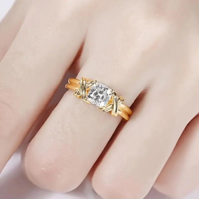 This set of copper engagement and wedding rings feature synthetic zirconia stones, perfect for daily wear or special occasions like anniversaries and birthdays.