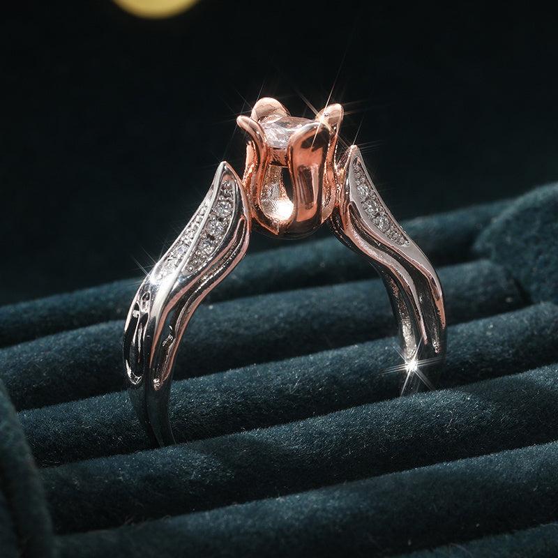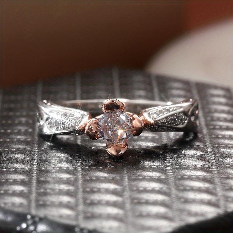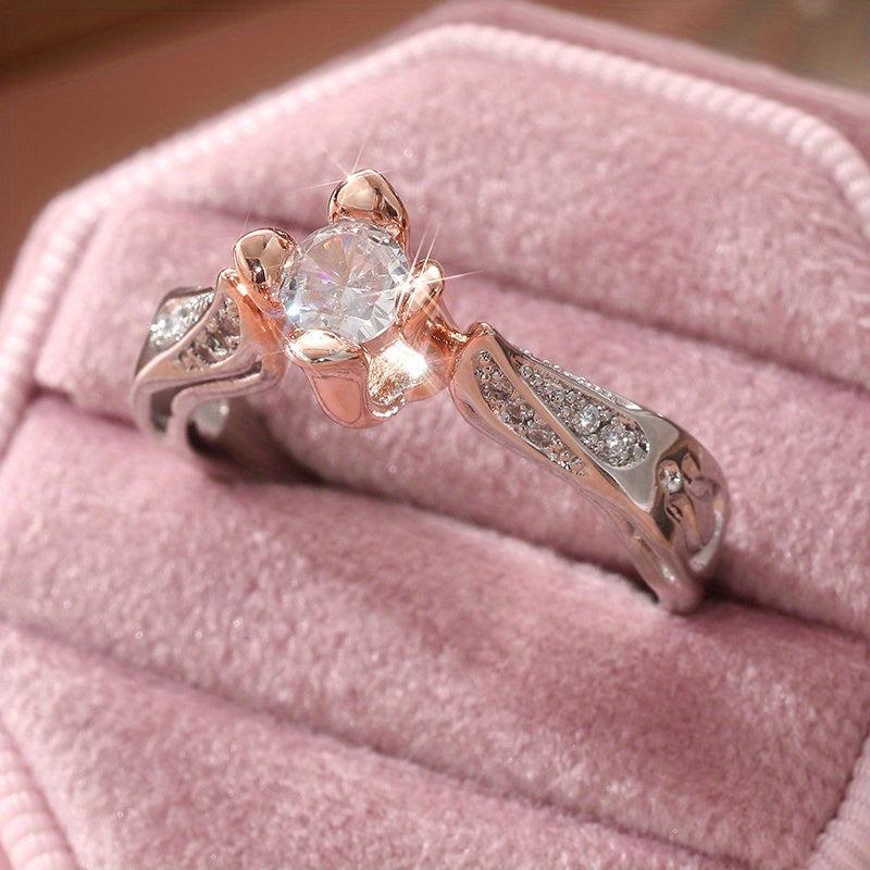 This stunning rose flower engagement ring is made with synthetic zirconia, perfect for adding a touch of sparkle to any outfit. It is ideal for parties, weddings, and as a gift for Mother's Day.