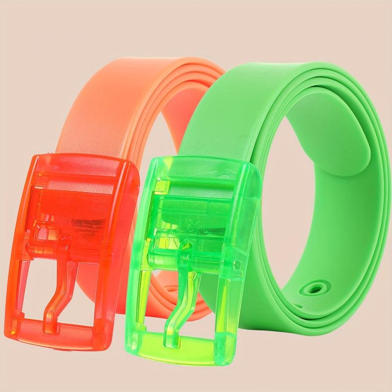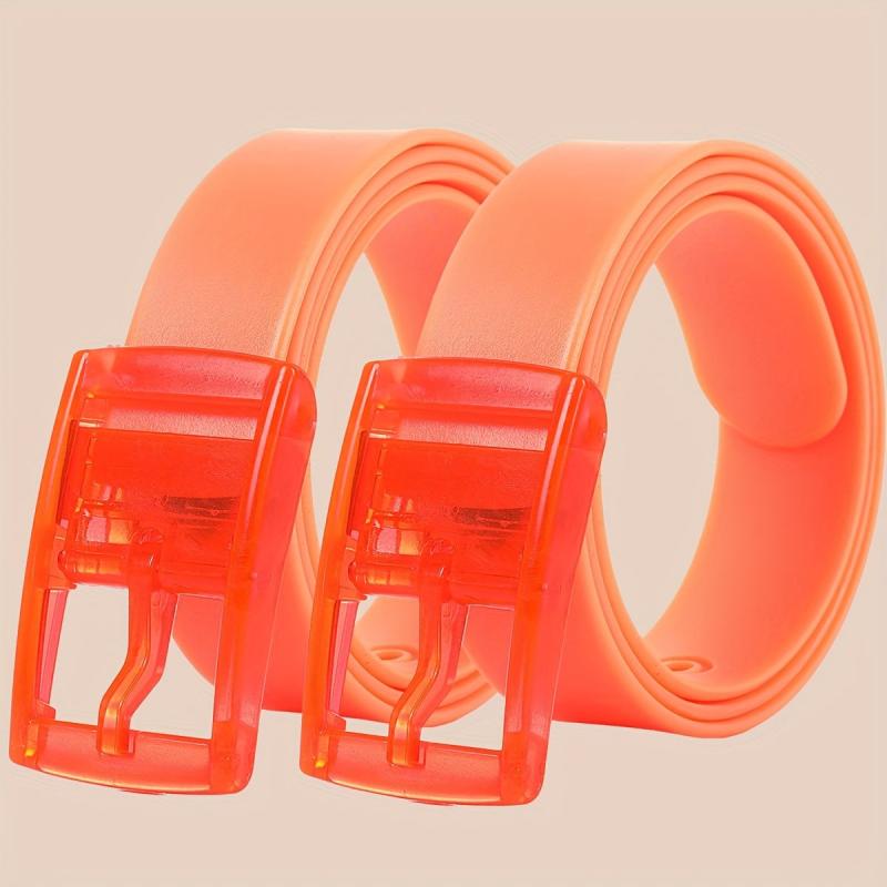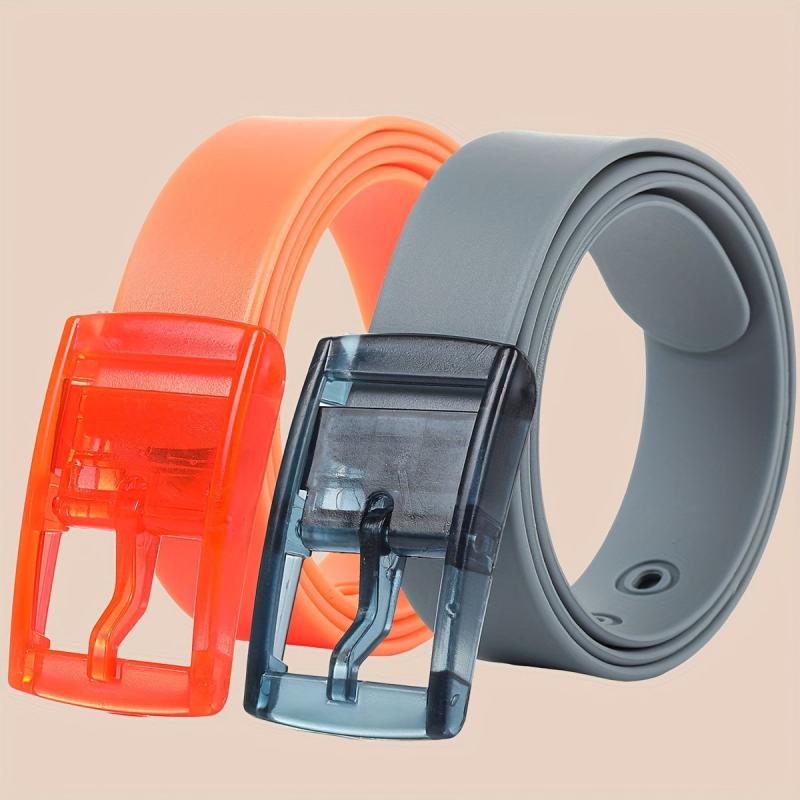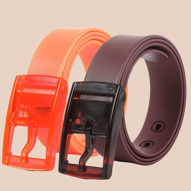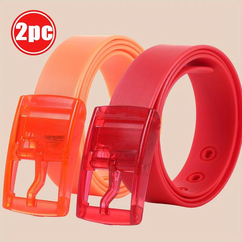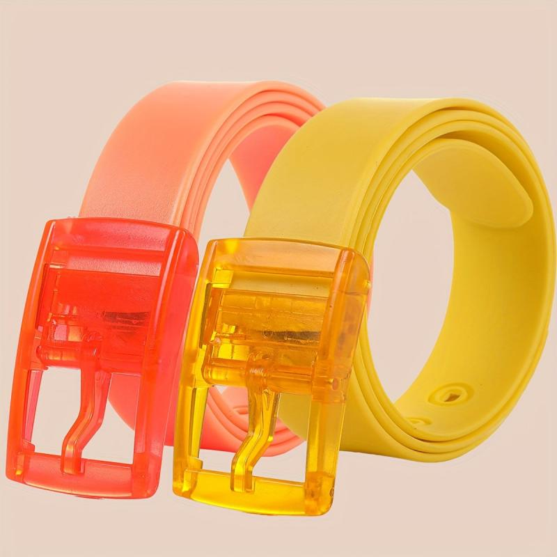 Get this set of two fashionable and versatile silicone belts with a sweet candy scent. Perfect for couples, these belts feature colorful pin buckles and are made of durable metal.