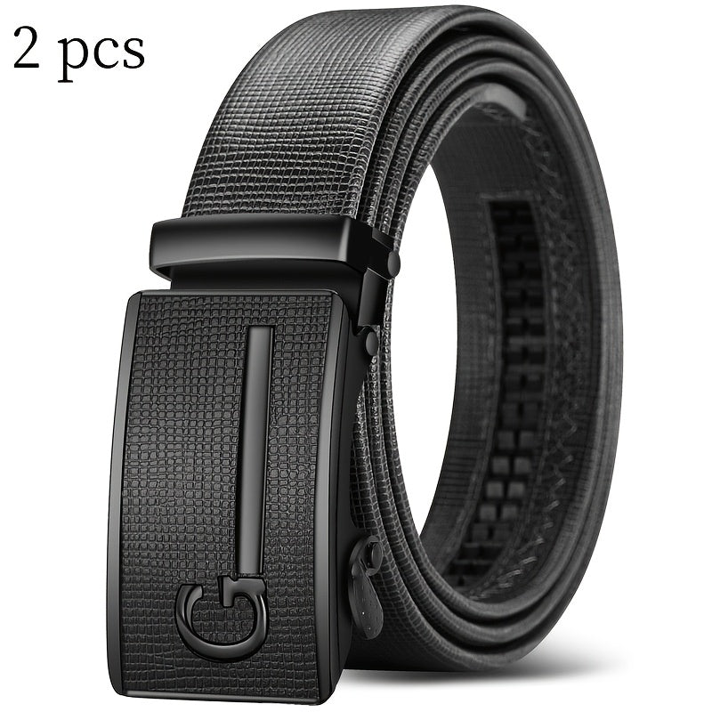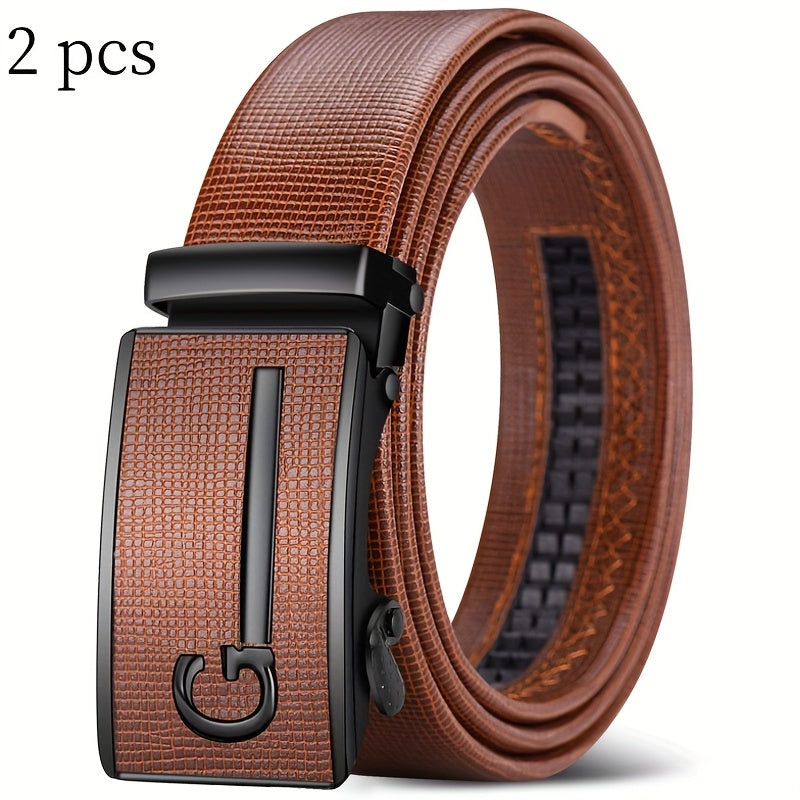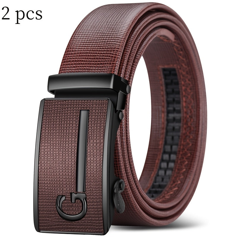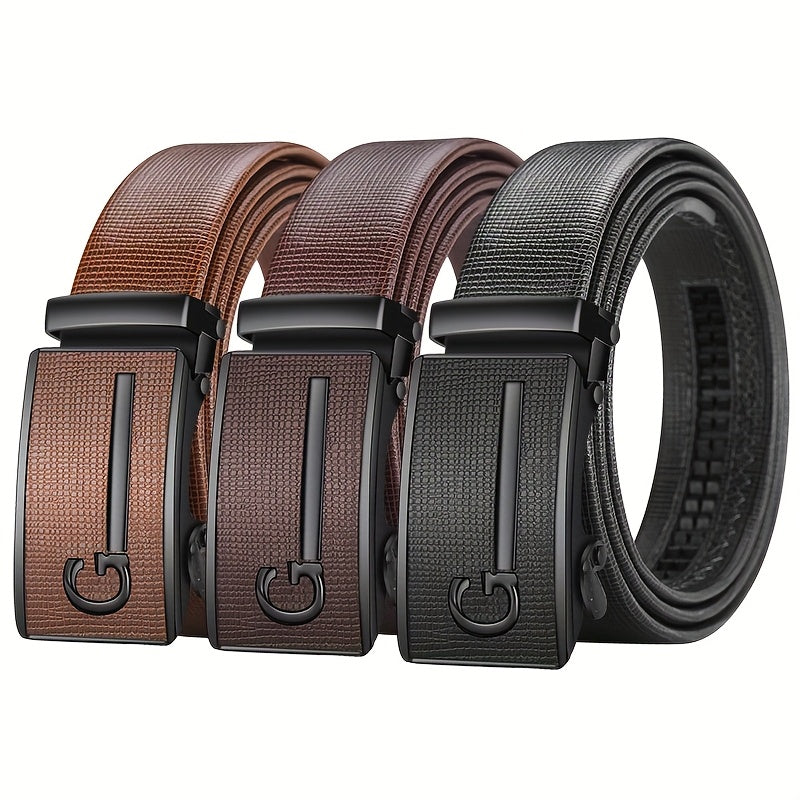 Upgrade your style with these versatile faux leather belts for men featuring automatic buckles. Perfect for everyday wear or special occasions.