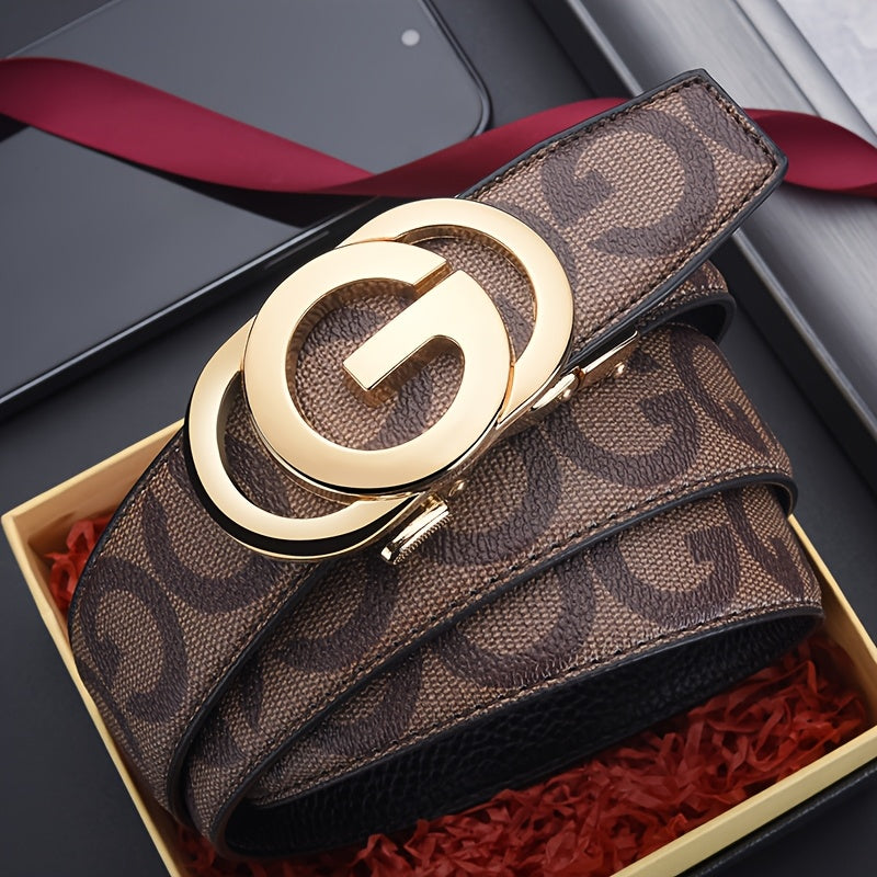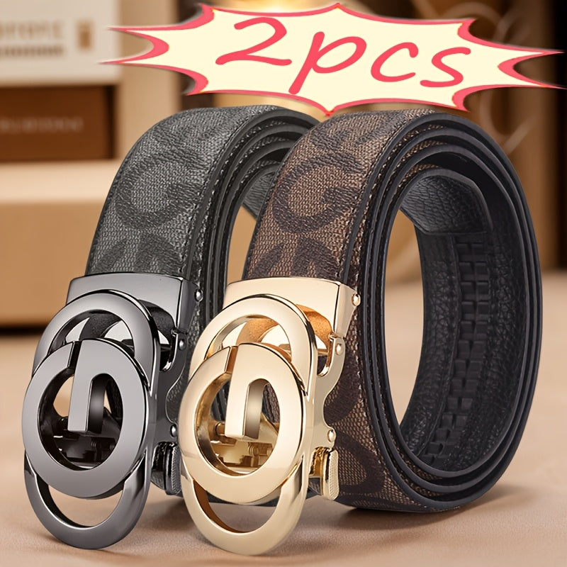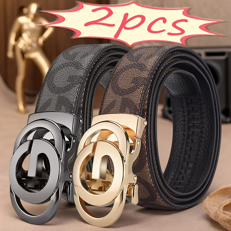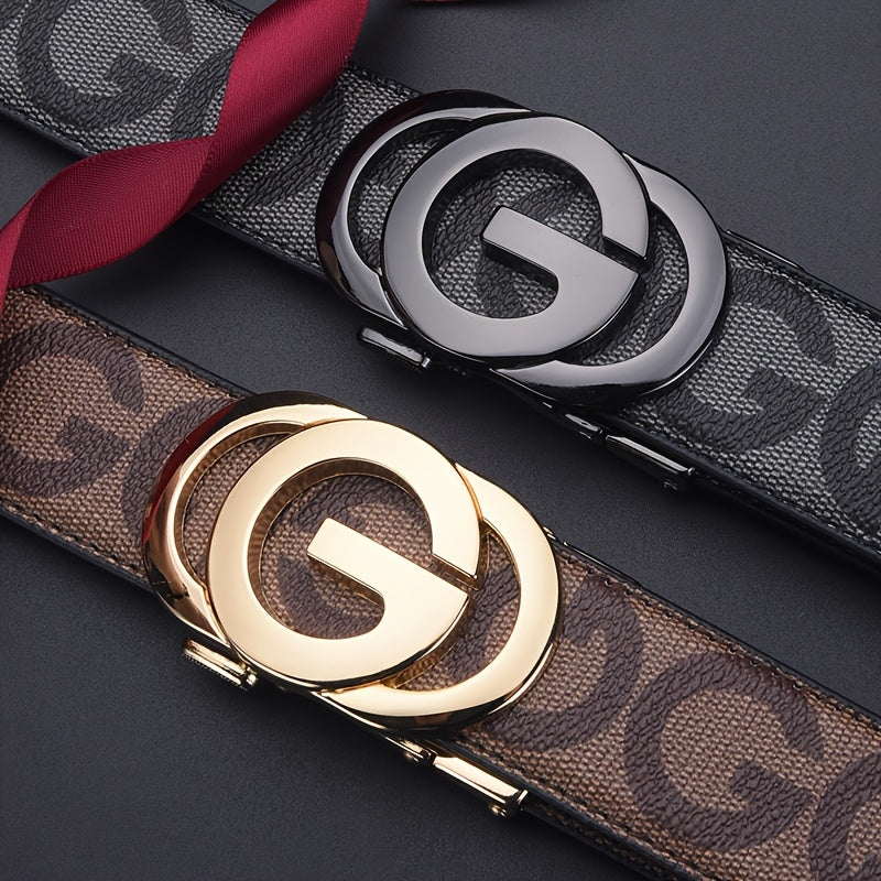 Upgrade your belt collection with these 2pcs men's business belts. Featuring an automatic alloy buckle, these belts are perfect for casual or suit pants. The stylish embossed letter G and brown faux leather add a touch of sophistication to any look.