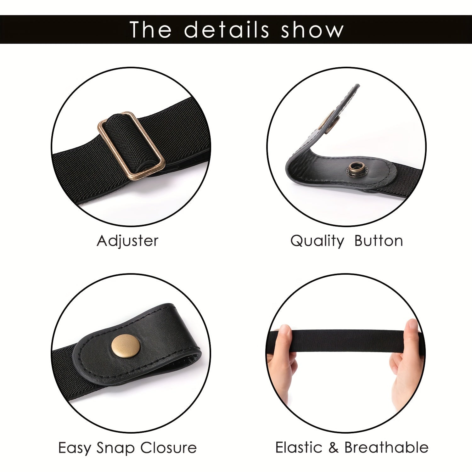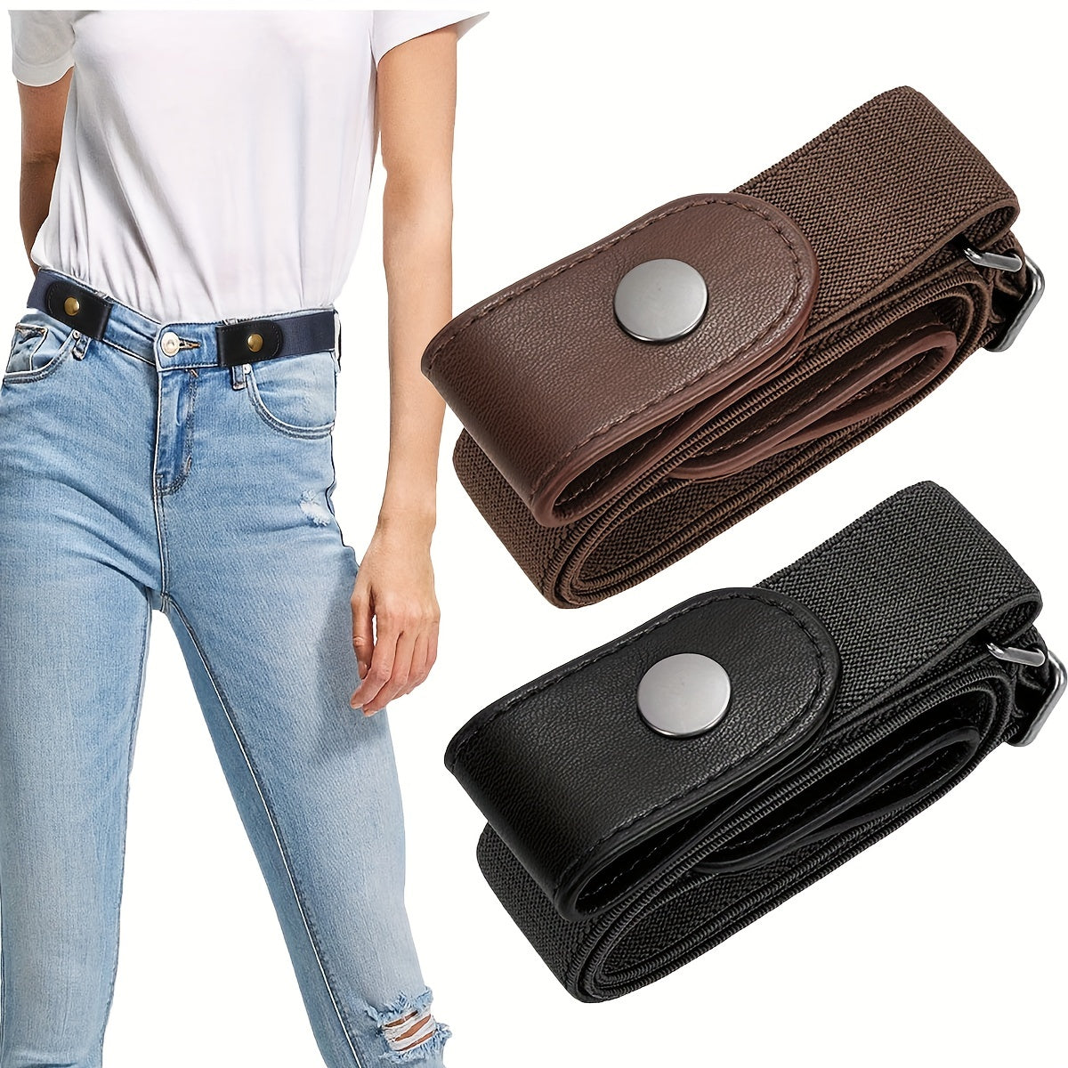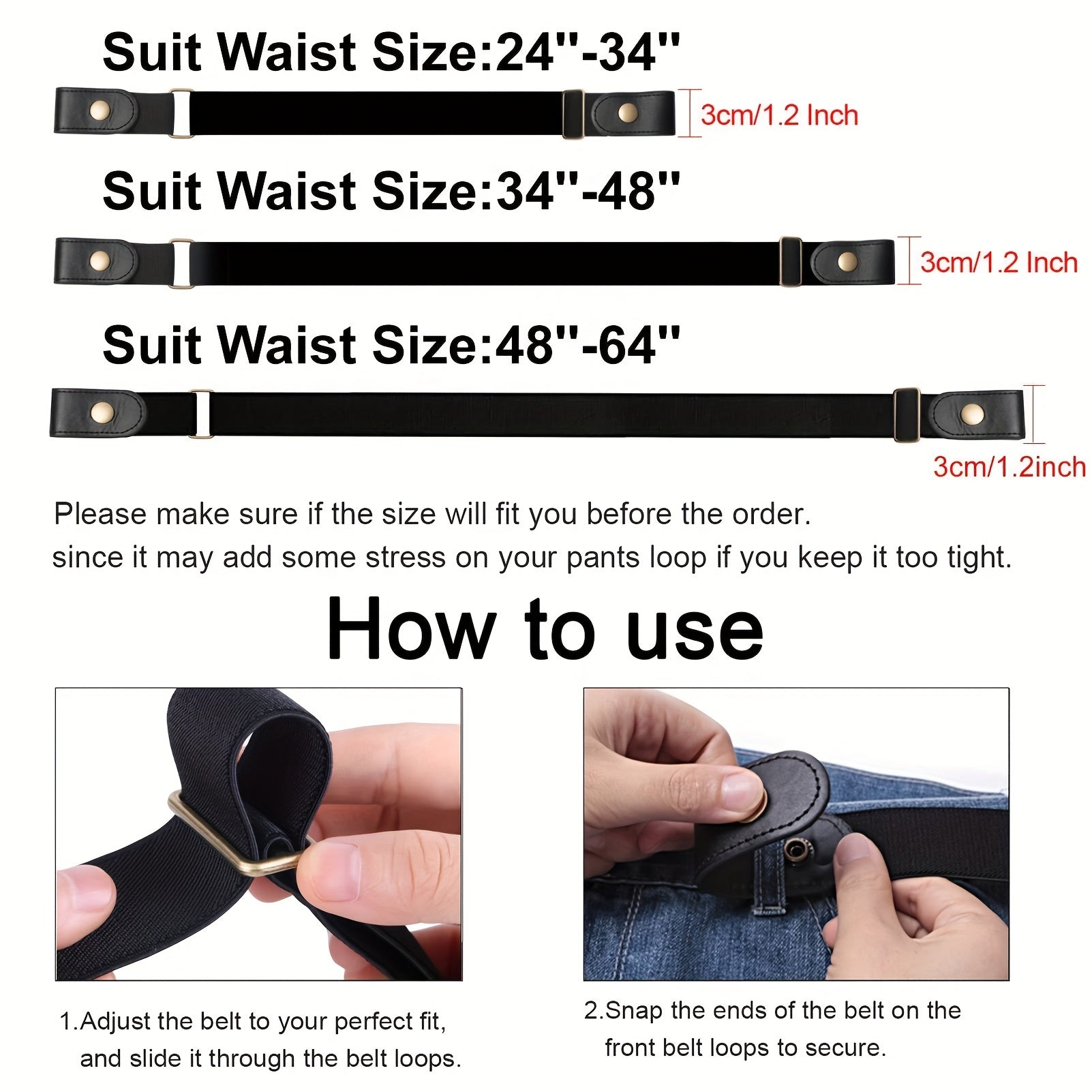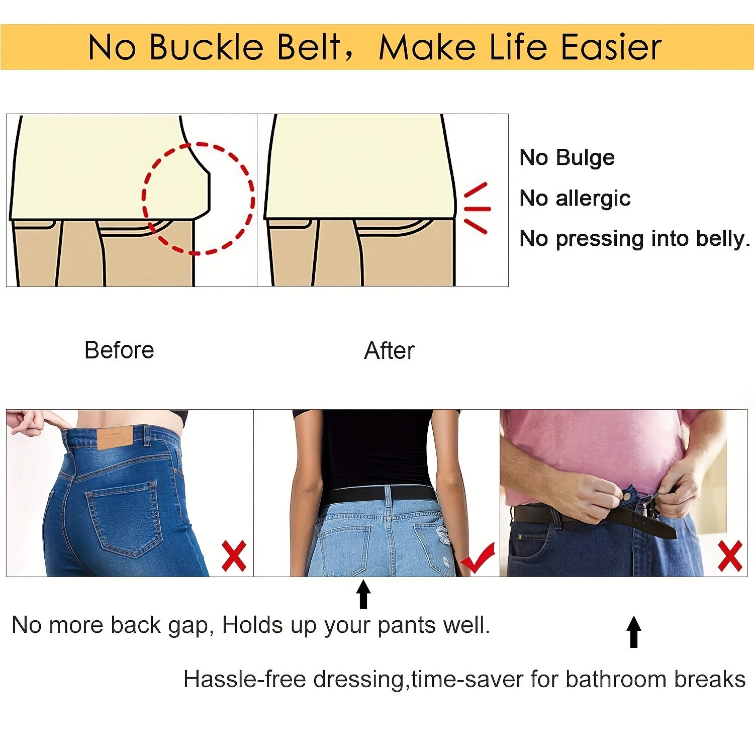 This set includes 2 no buckle invisible stretch belts, perfect for both women and men. These belts are ideal for jeans, pants, and dresses, providing a comfortable and secure fit without any buckles.