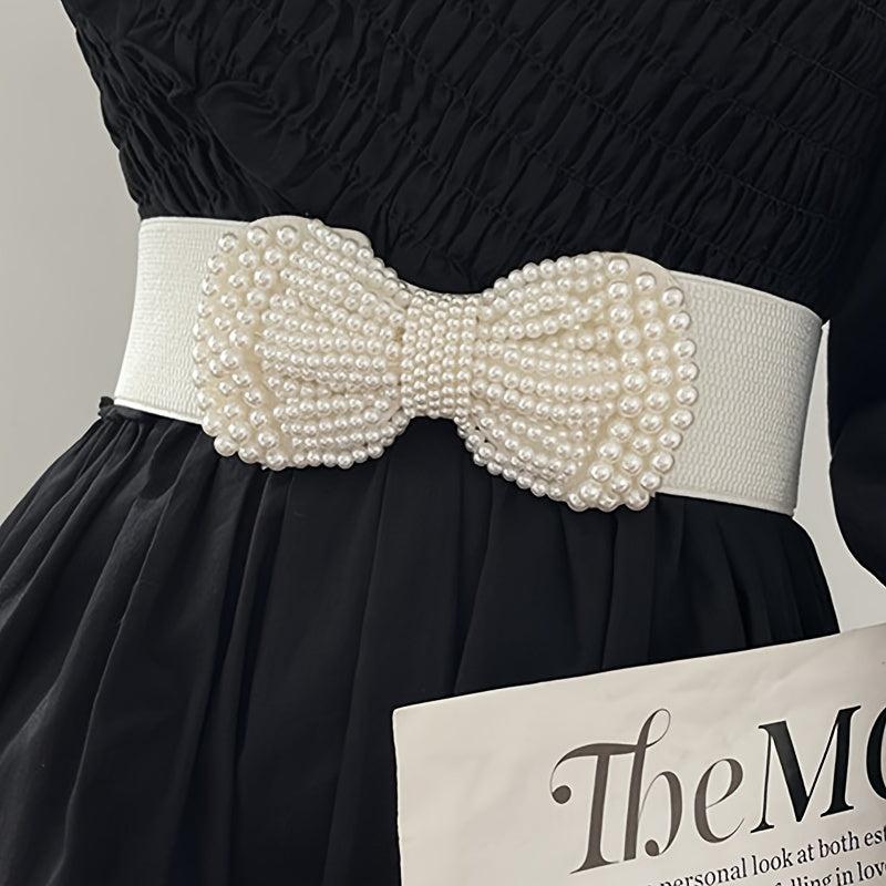 Stylish knit belt perfect for dresses, coats, and shirts. Ideal for casual to formal occasions. Features a bow and rhinestone accents for a touch of elegance.