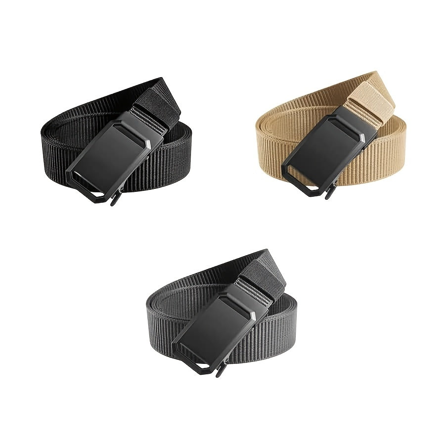 Get this set of 3 versatile and durable canvas belts perfect for casual attire. The belts feature automatic buckles and are made of high-quality nylon material. They come in olive green and beige colors.