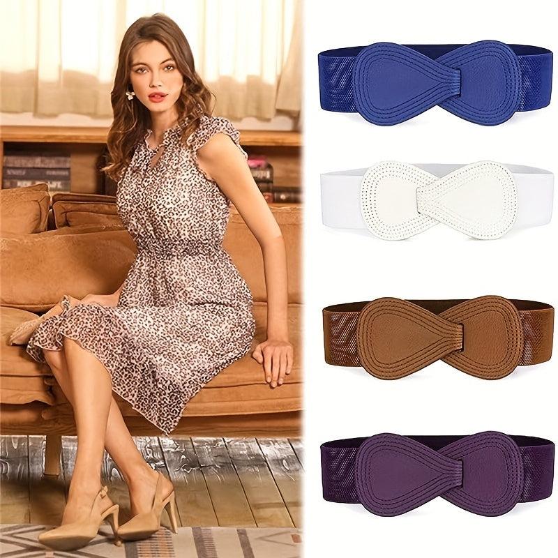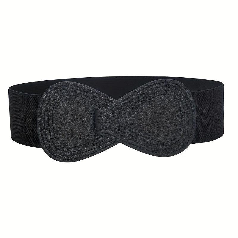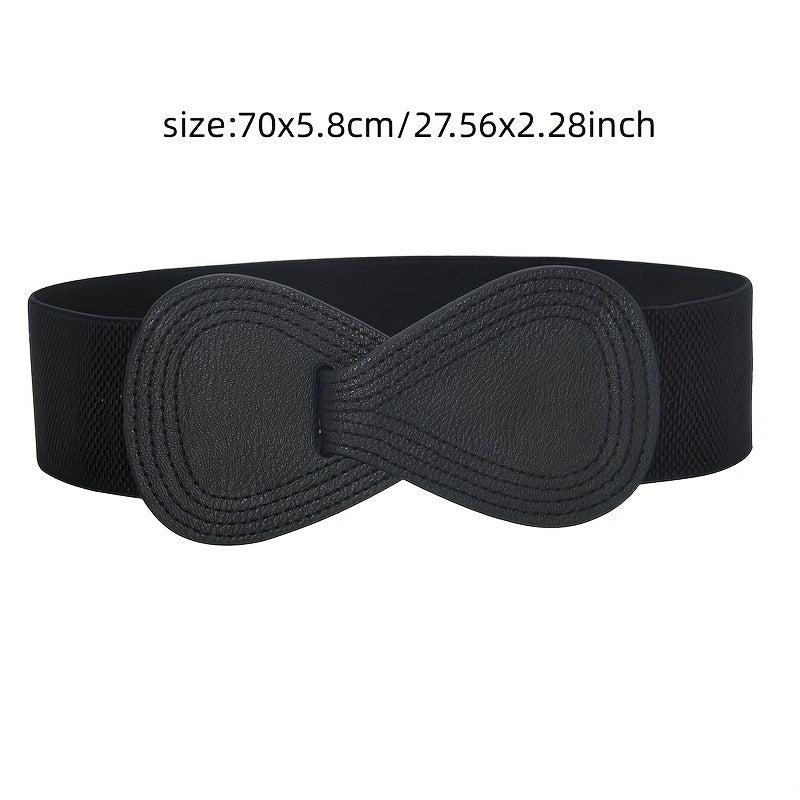 Add a touch of classic style to your outfit with this wide belt. The 8 shaped double buckle design is both fashionable and functional, perfect for cinching in your waist and enhancing your curves. Made from high-quality elastic material, this belt is comfortable to wear all day long.