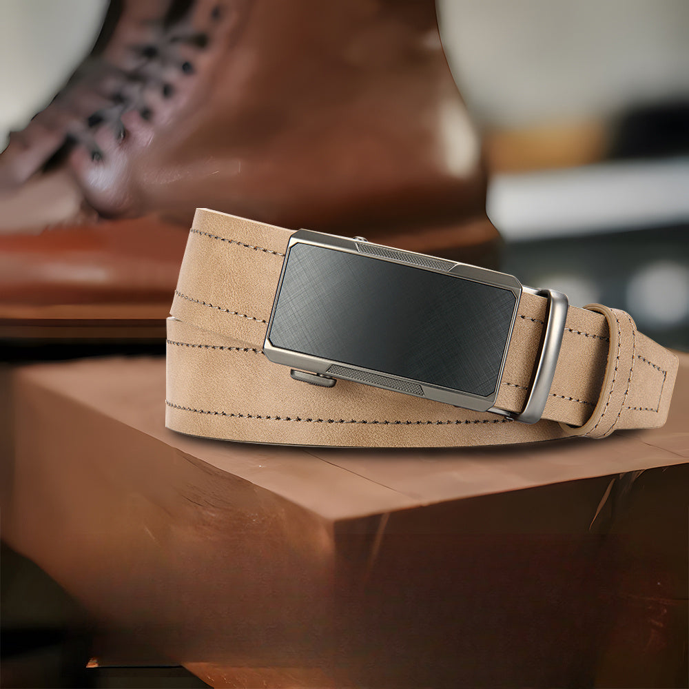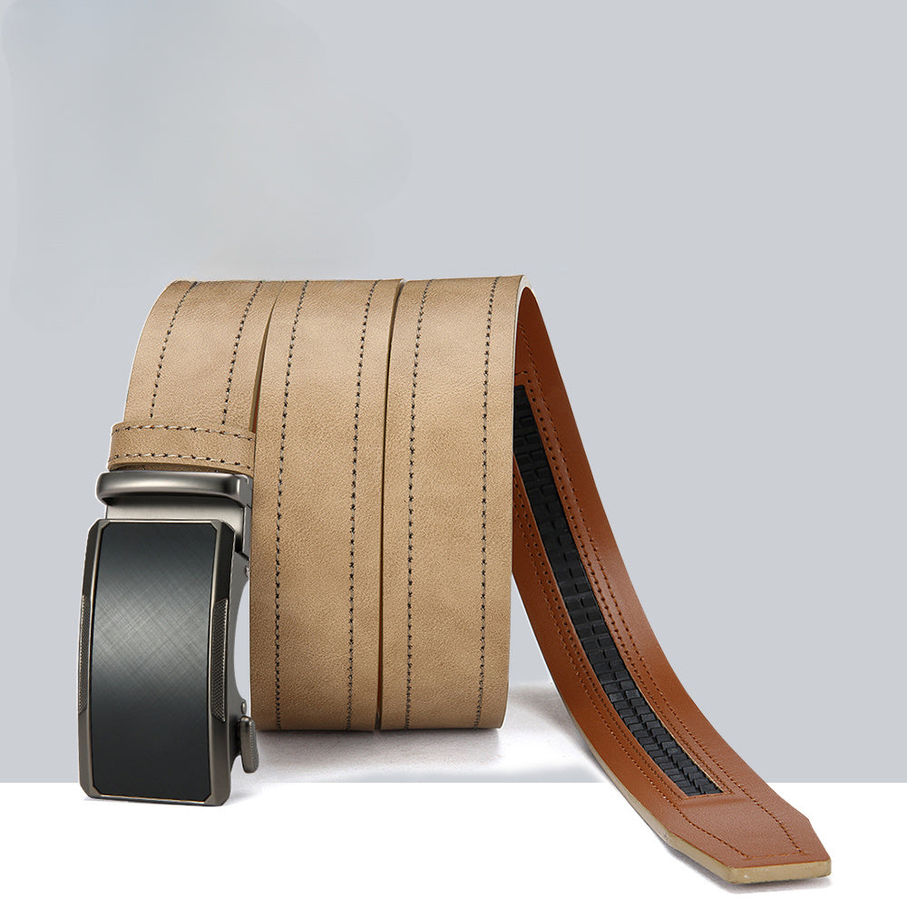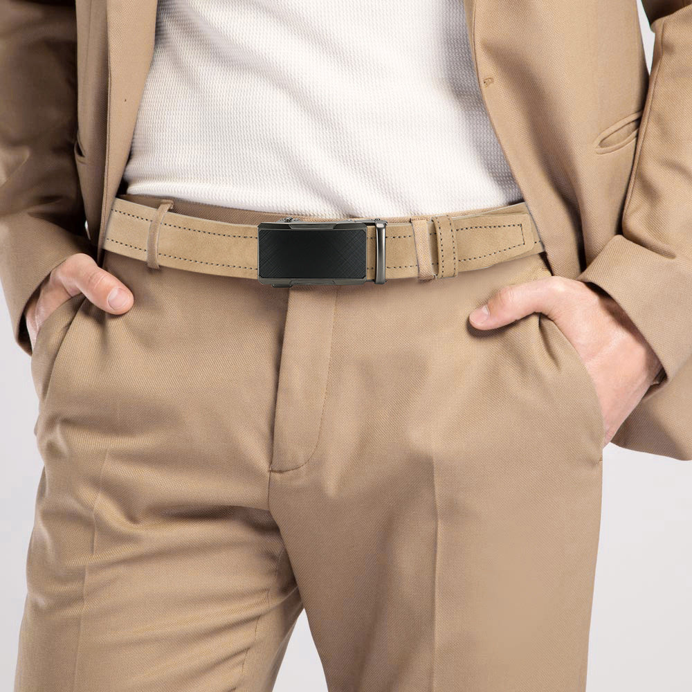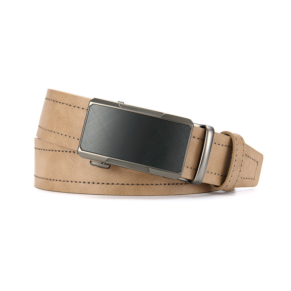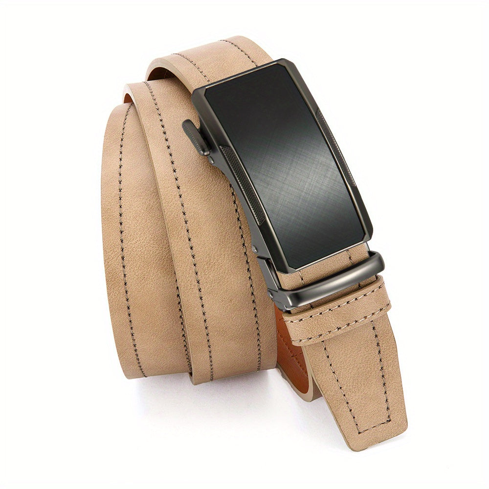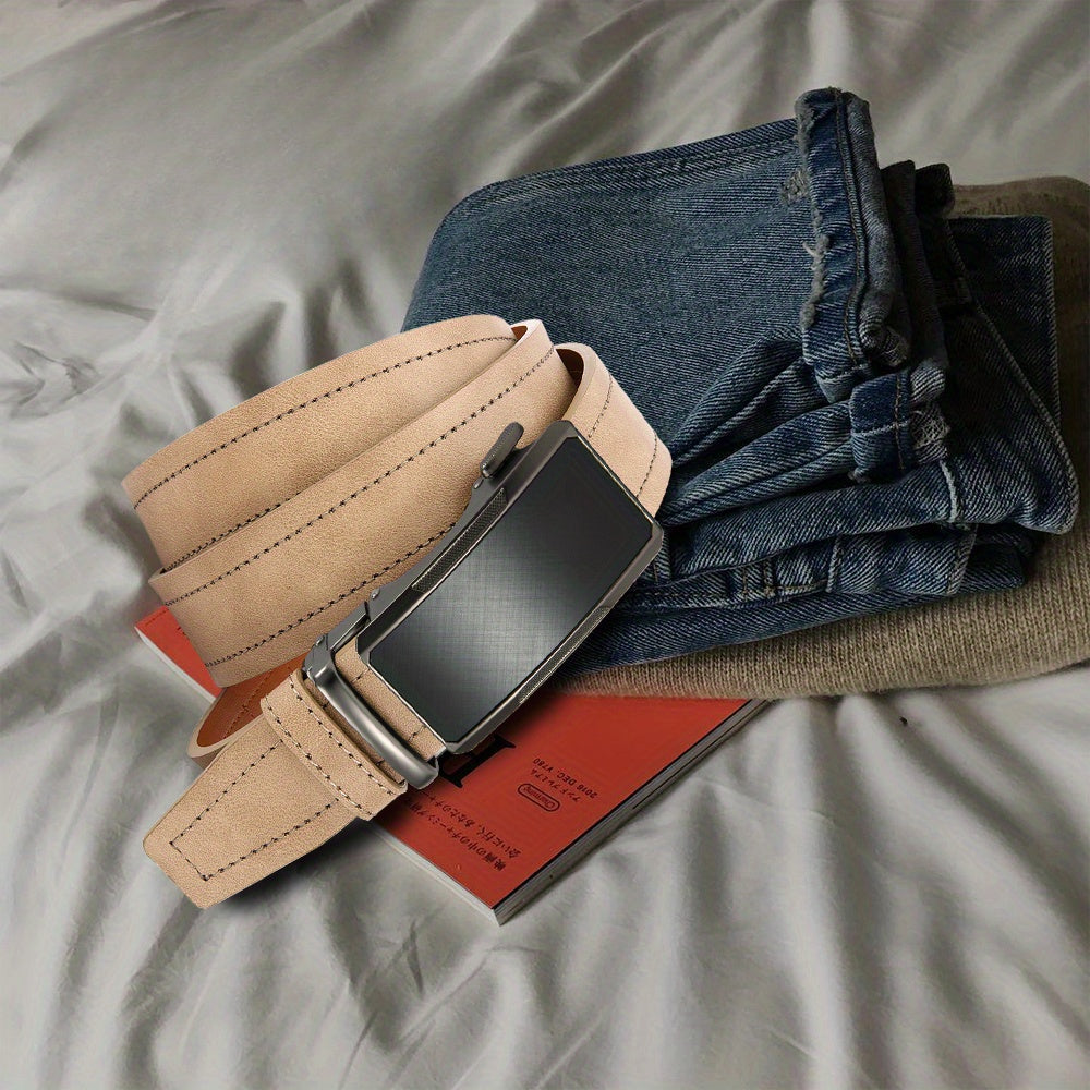This versatile beige men's belt features an alloy square buckle and a fashionable faux leather strap. It is perfect for young and middle-aged men and makes an ideal gift.