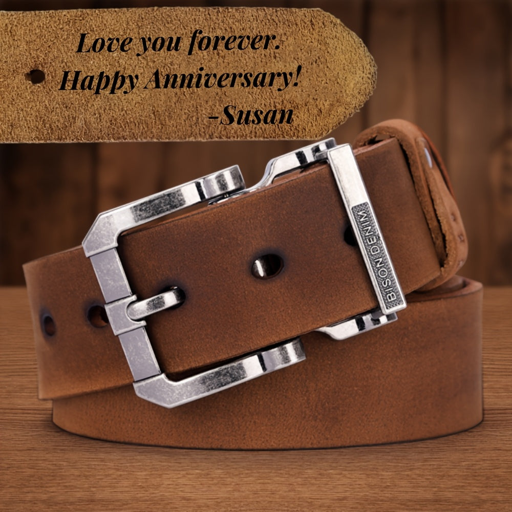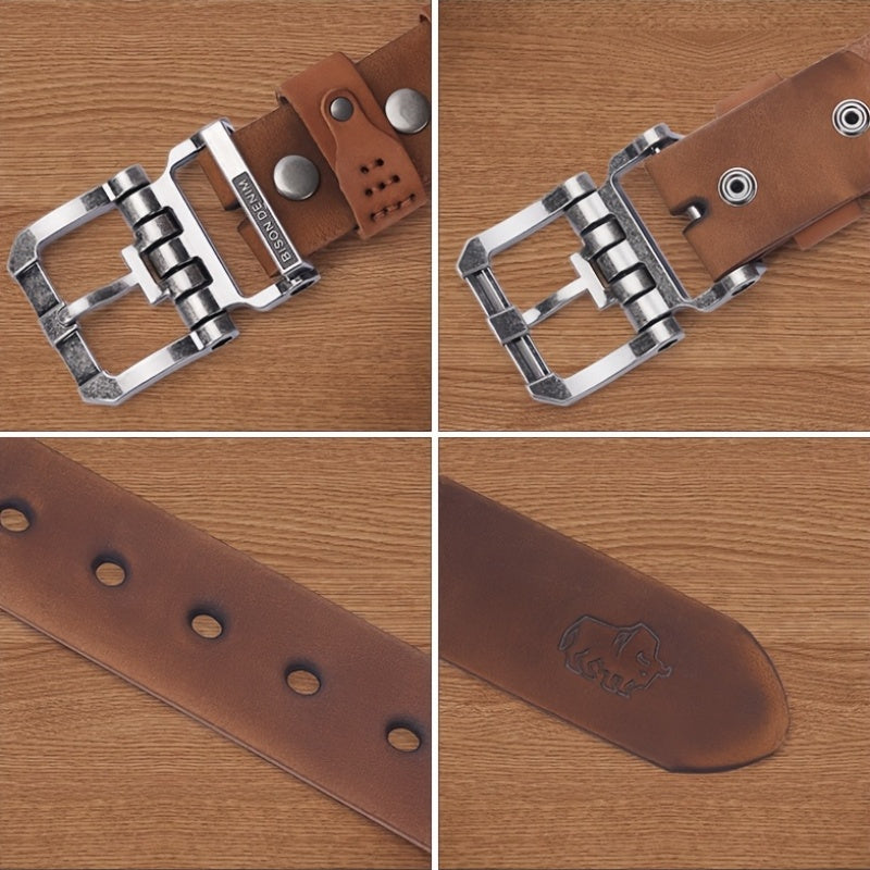 This casual retro leather belt by BISON DENIM features a dark brown color with a square alloy buckle. It makes a perfect gift for Valentine's, Father's Day, or Thanksgiving.