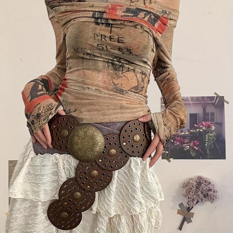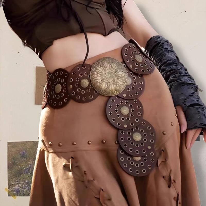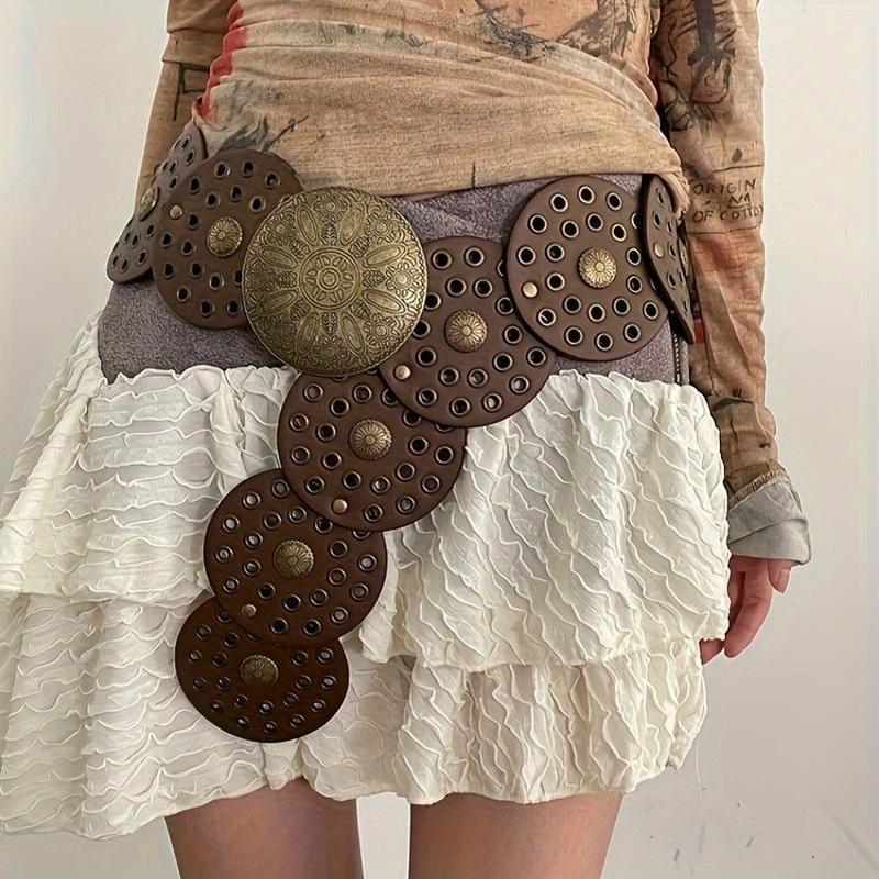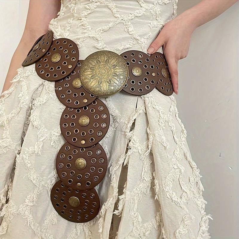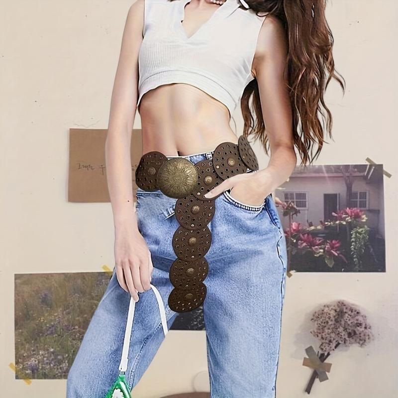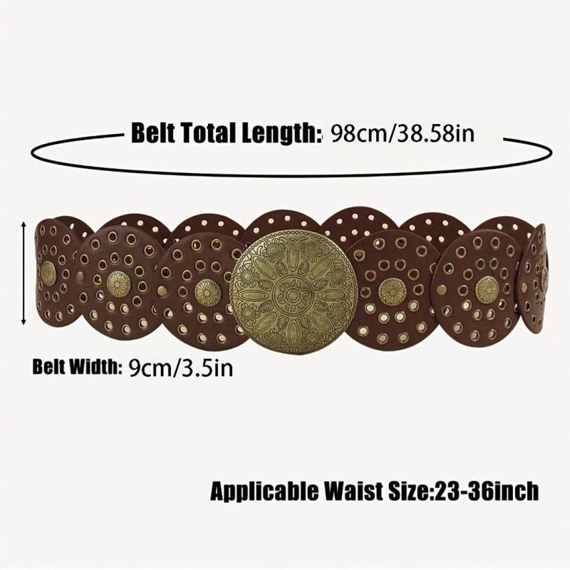 Add a touch of bohemian flair to your outfit with this PU leather belt. The vintage western style, wide buckle, and coffee brown rivet make it perfect for casual outings, date nights, and parties.