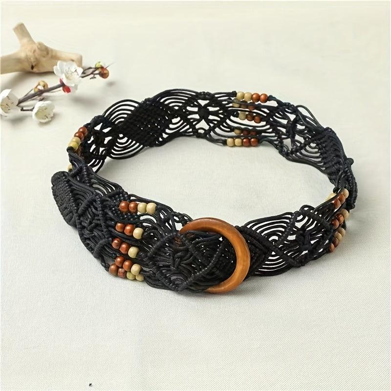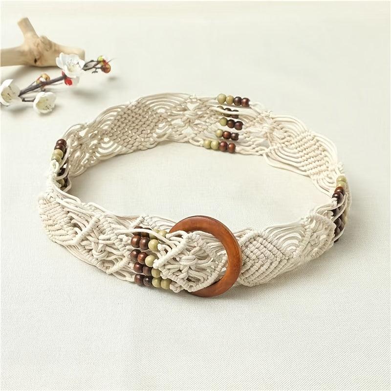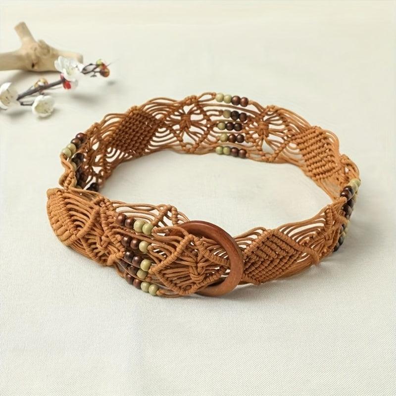 Elevate your outfit with this versatile and decorative waistband. Handwoven in a bohemian style, perfect for adding a unique touch to your skirts. No feathers used in the design. Fits an average size waist.