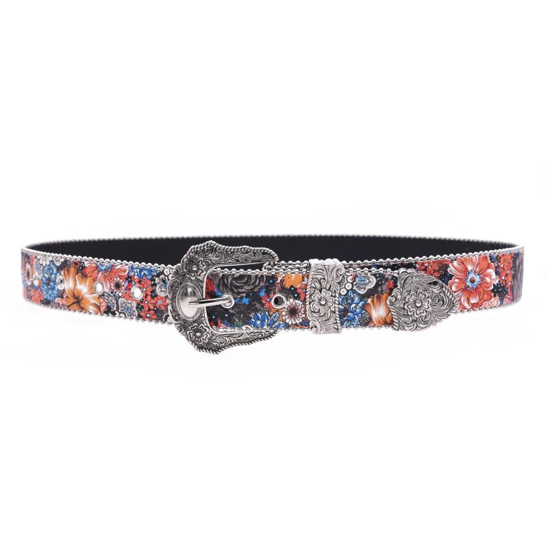 Elevate your daily look with this retro bohemian dark floral decorative belt. It features metallic accents and is adjustable for the perfect fit. Ideal for pairing with jeans, pants, and shirts.