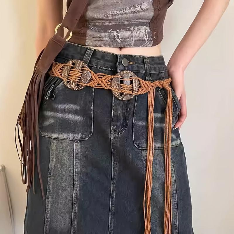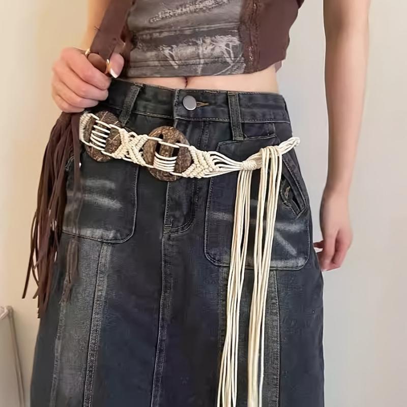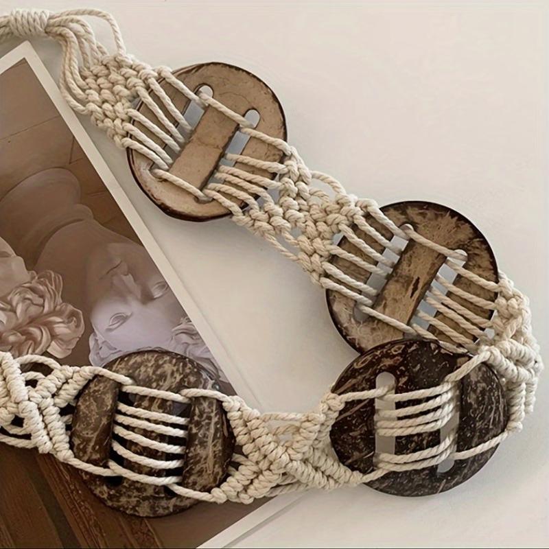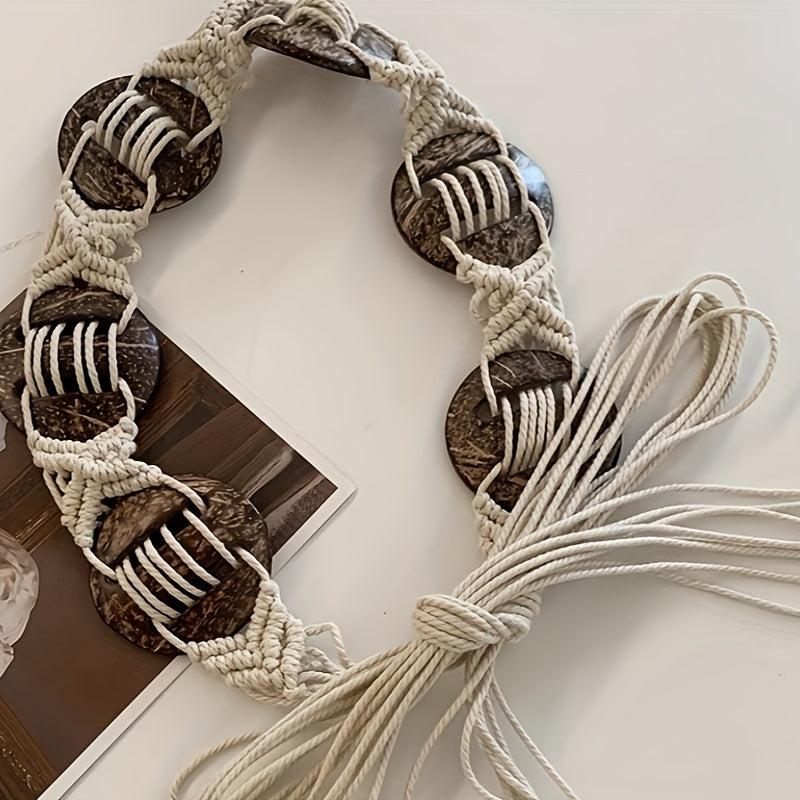 Add a touch of vintage-inspired style to your outfit with this fashionable and versatile coconut shell belt. Perfect accessory for boho looks.