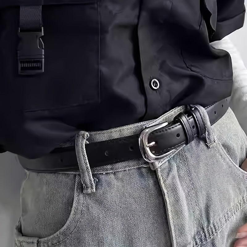 Elevate your style with this stylish and versatile faux leather belt in brown. The high-end design is perfect for pairing with jeans.