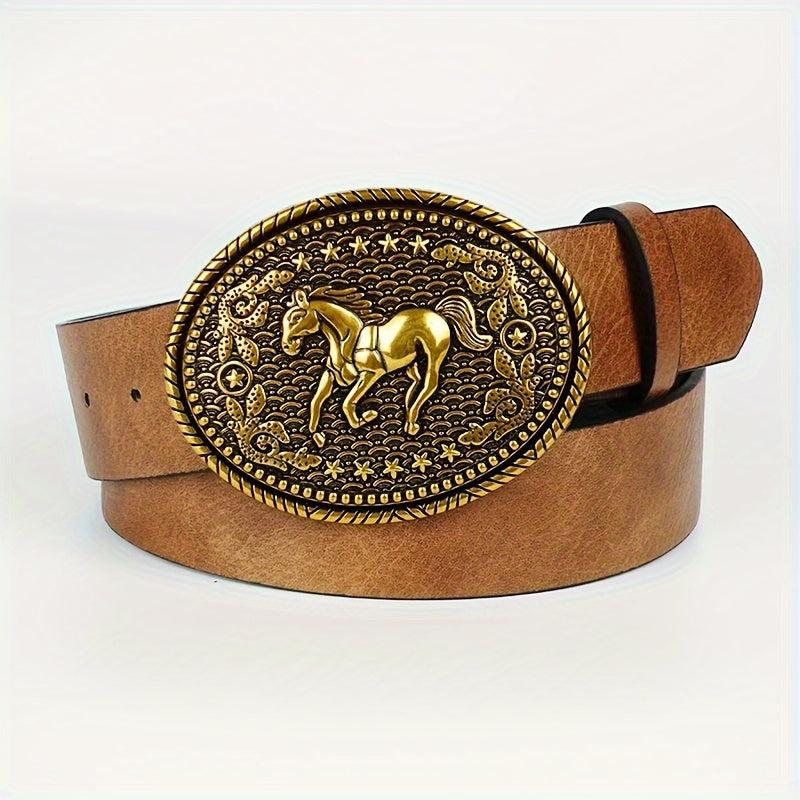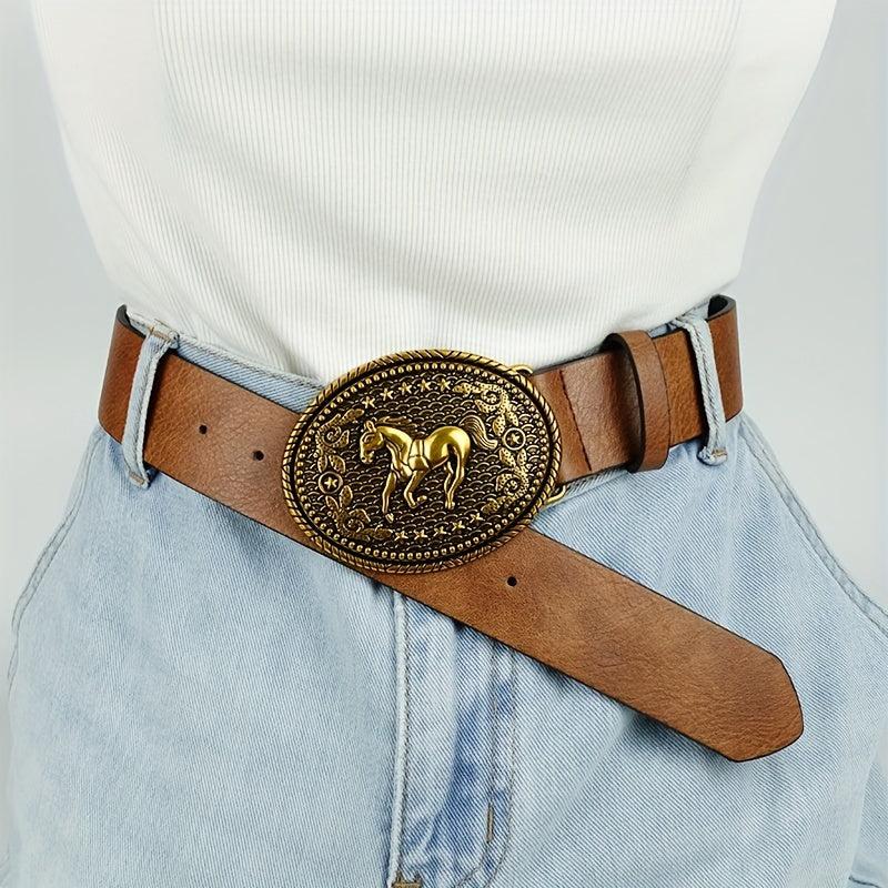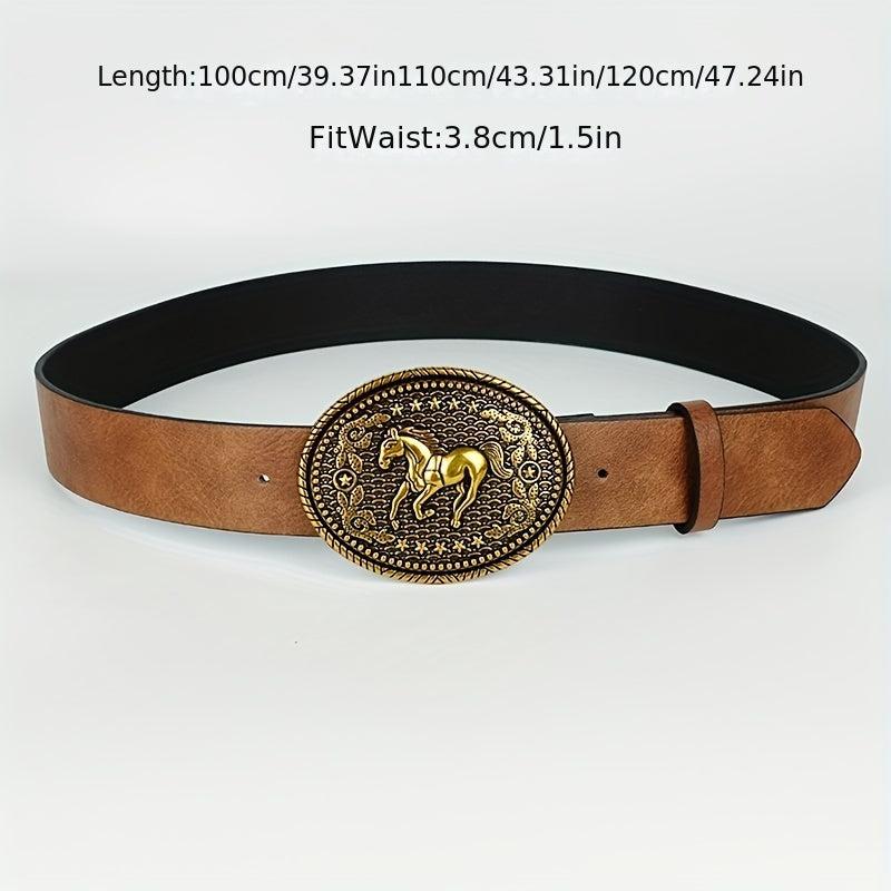 Add a touch of elegance to your outfit with this brown wide belt featuring a light golden round alloy buckle. Perfect for weddings, parties, and other special occasions.