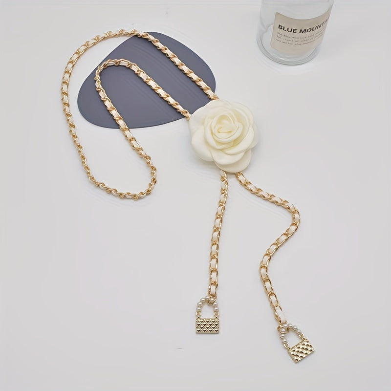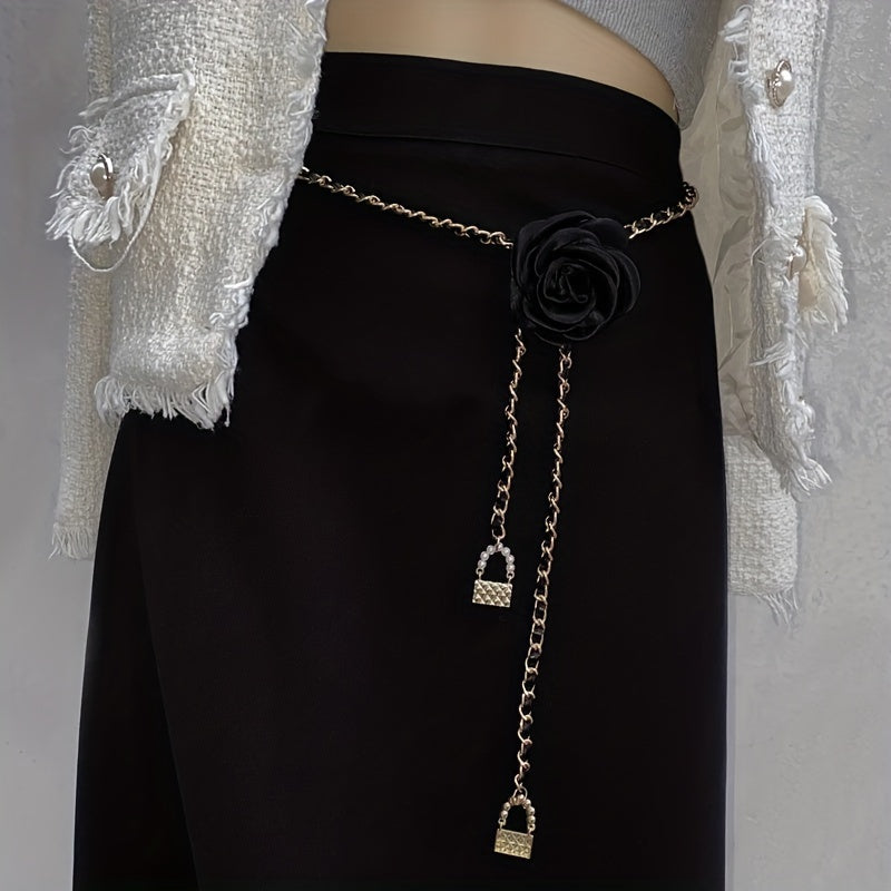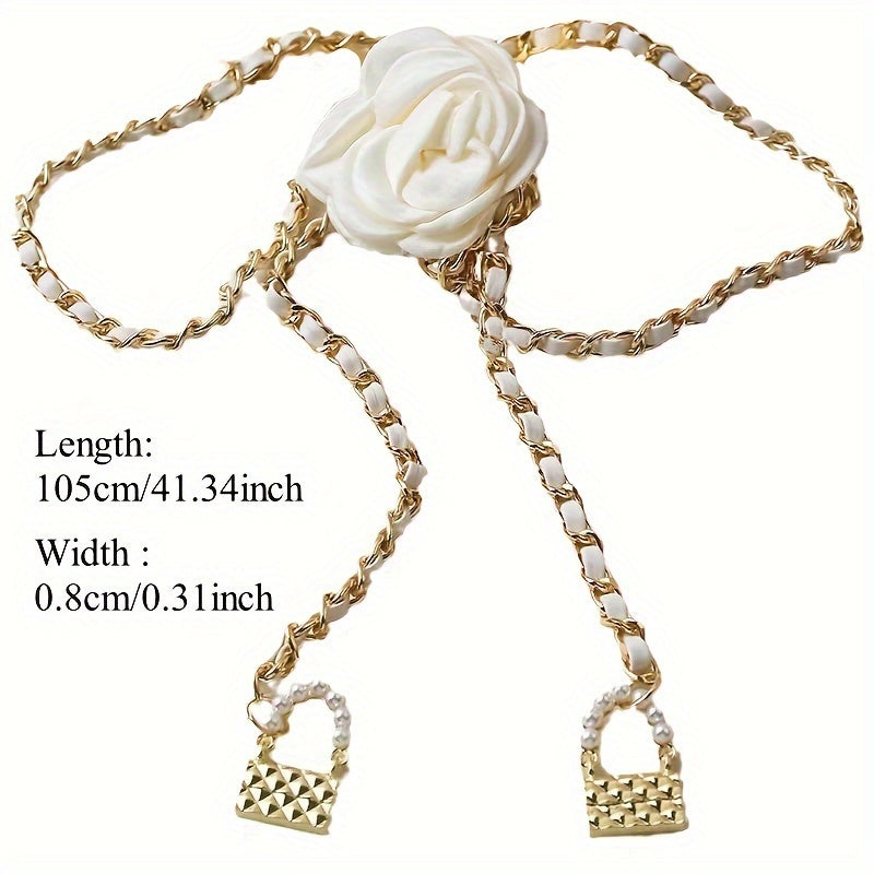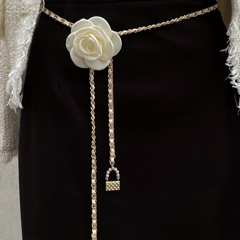 Elevate your look with this Camellia Floral Waist Chain Belt, featuring a sweet style with woven detail. Perfect for evening dates, beach outings, and sports activities.