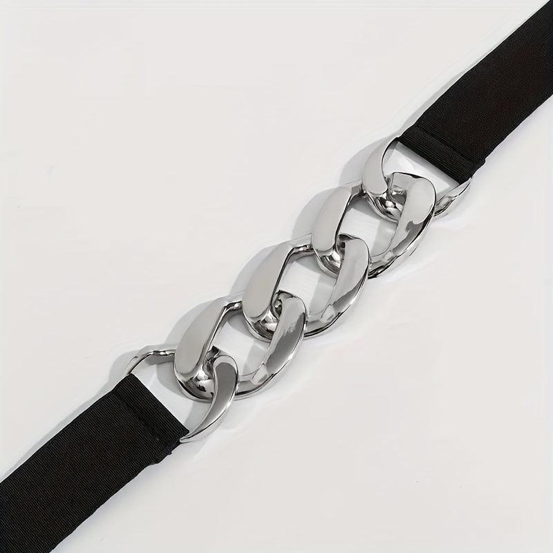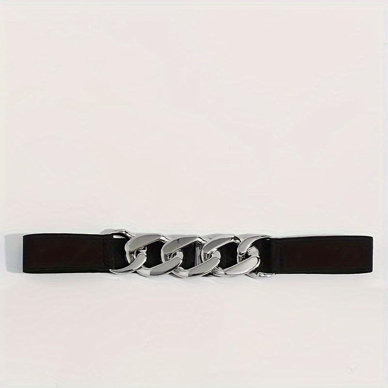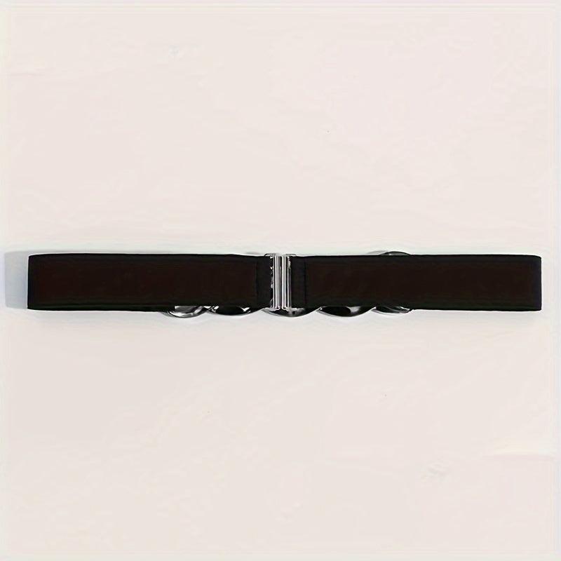 Add a stylish touch to your daily wear with this dark belt featuring a silvery buckle and twist design. Perfect for any outfit!