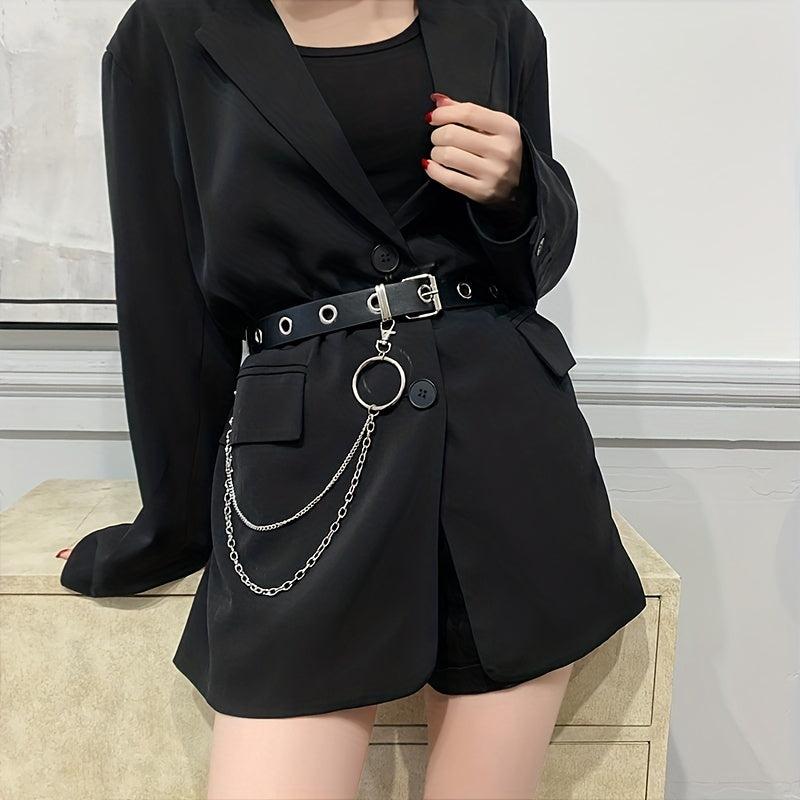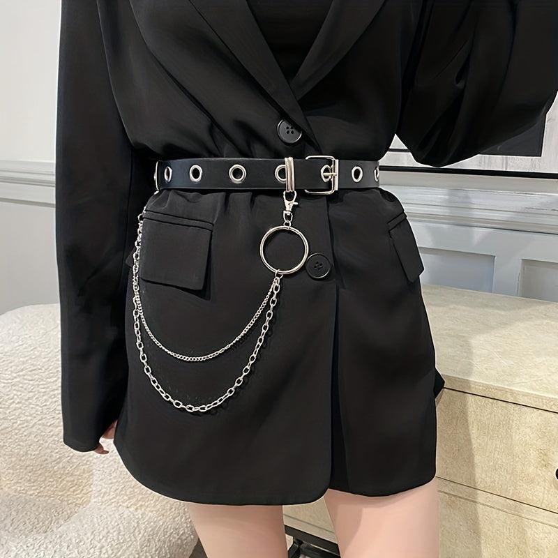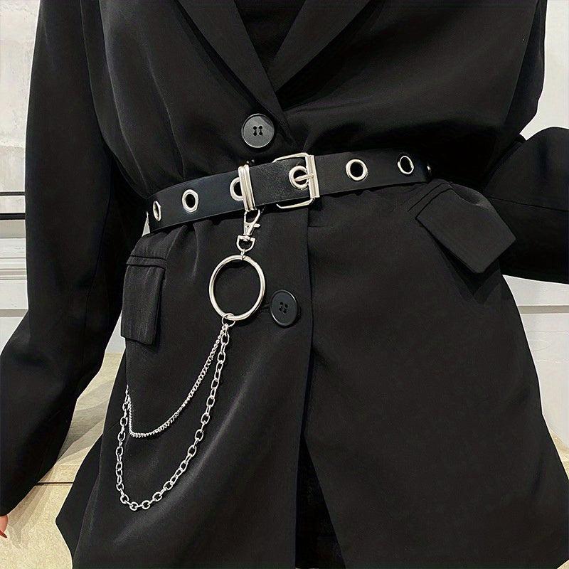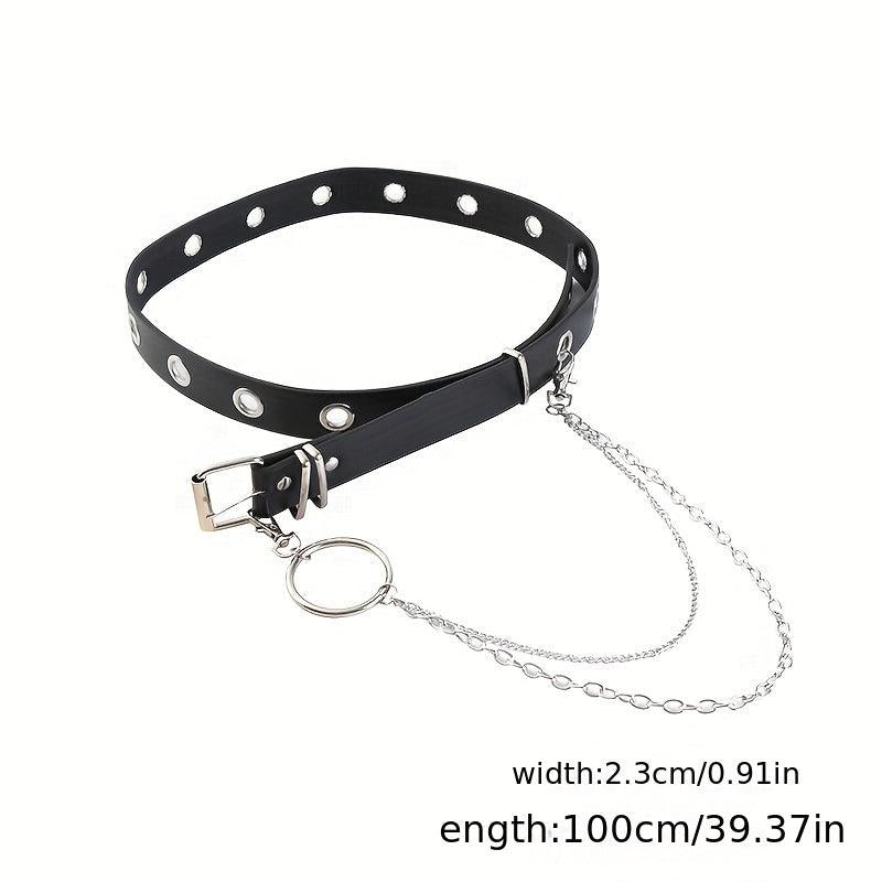 Add a touch of edgy style to your outfit with this detachable chain tassel rivet belt. Made of PU leather, this belt is perfect for a vintage gothic look.