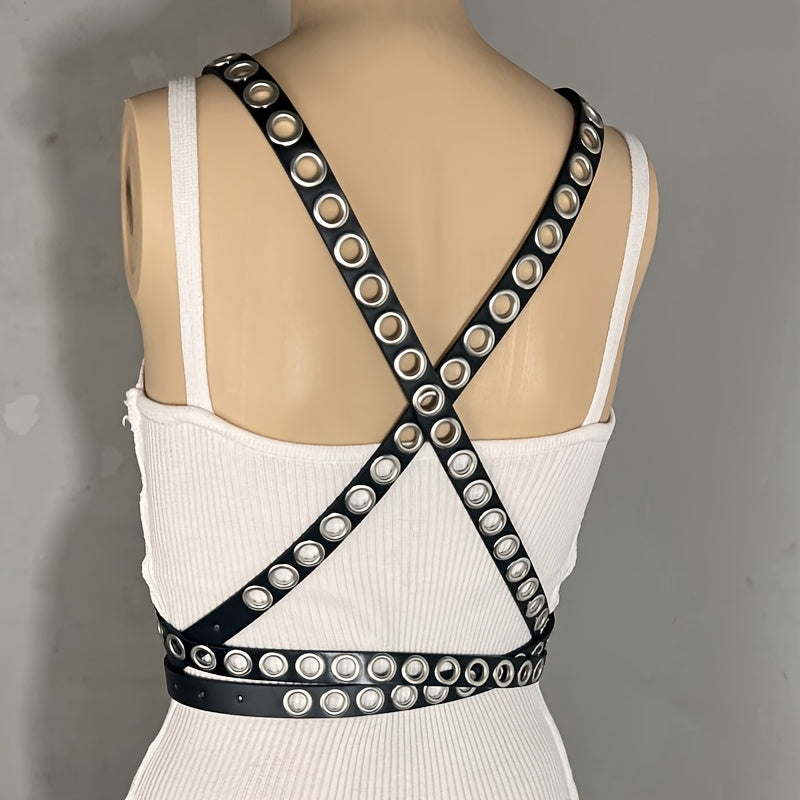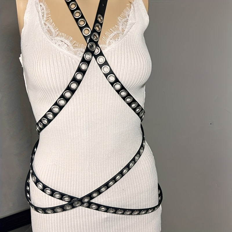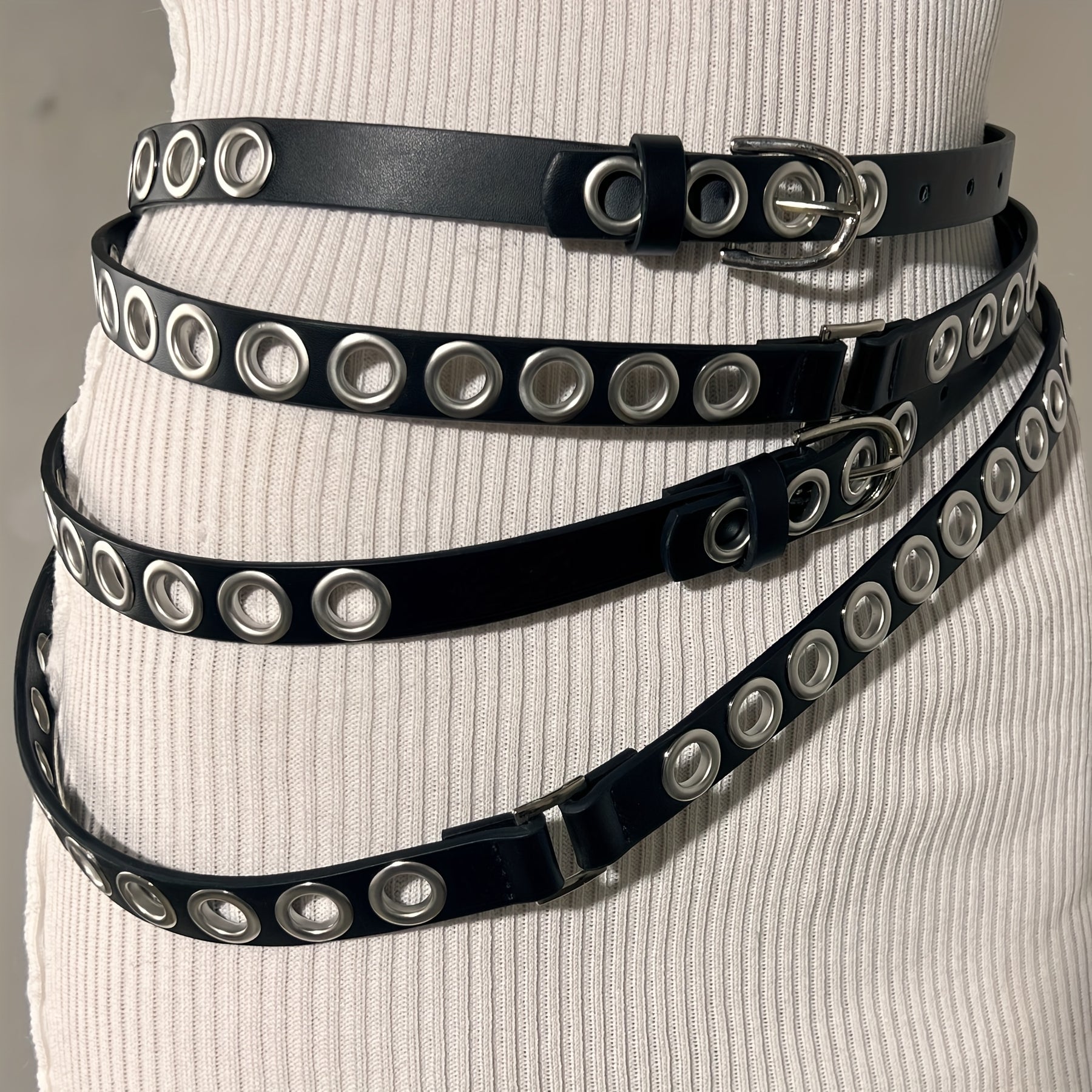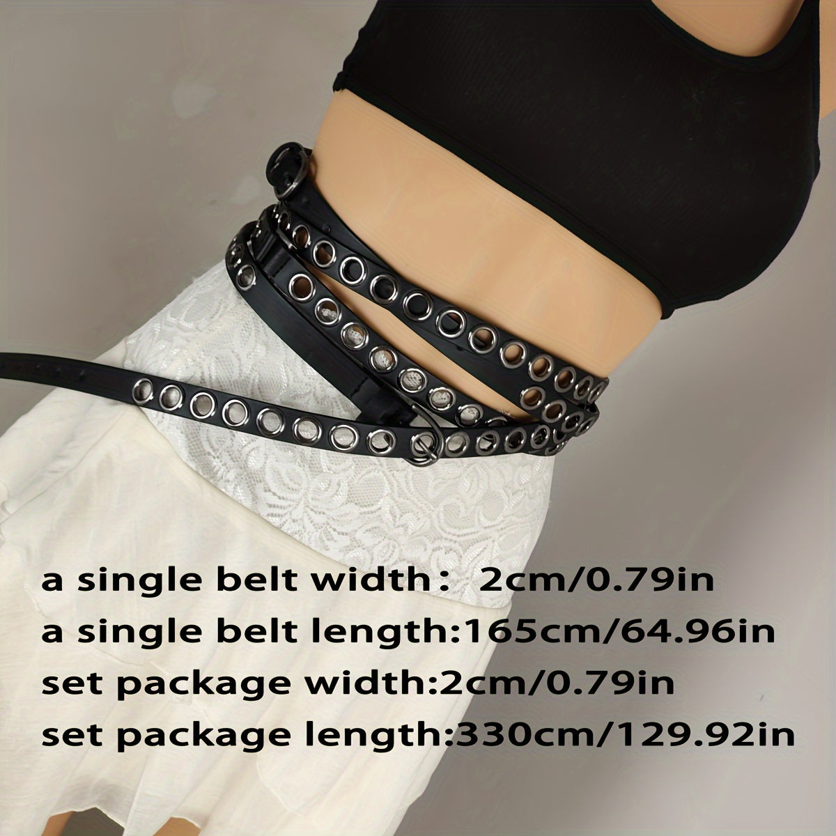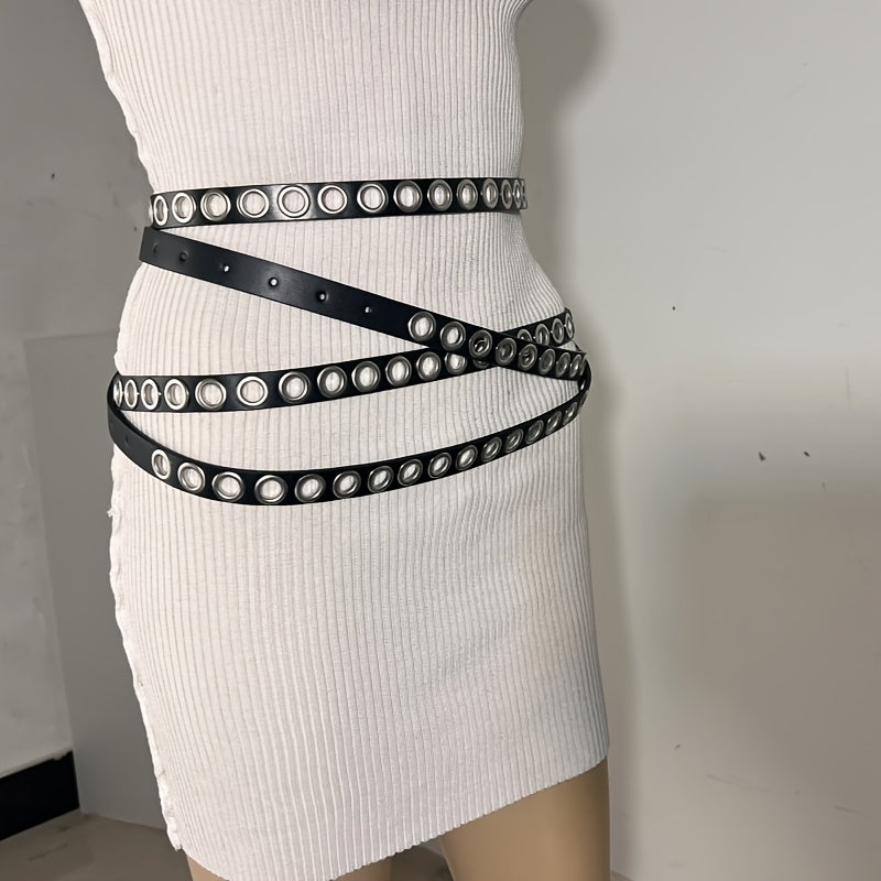 Elevate your street casual wear with this fashionable and versatile double loop belt. Featuring a Y2K Gothic Punk style eyelet design, this belt is perfect for adding a trendy touch to your outfit.
