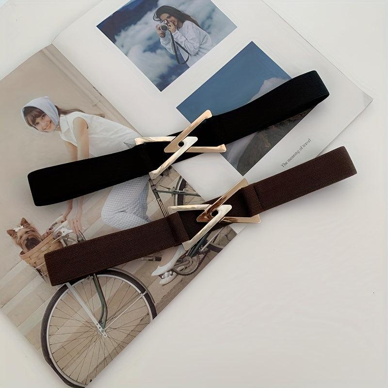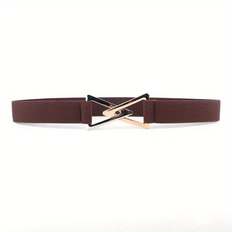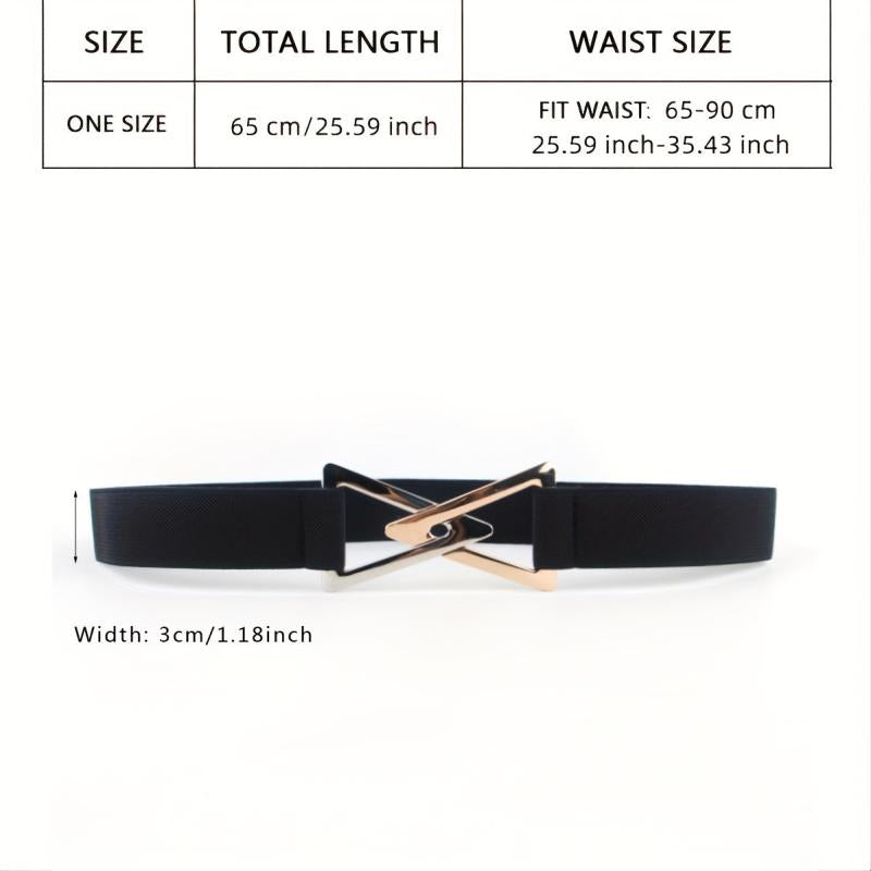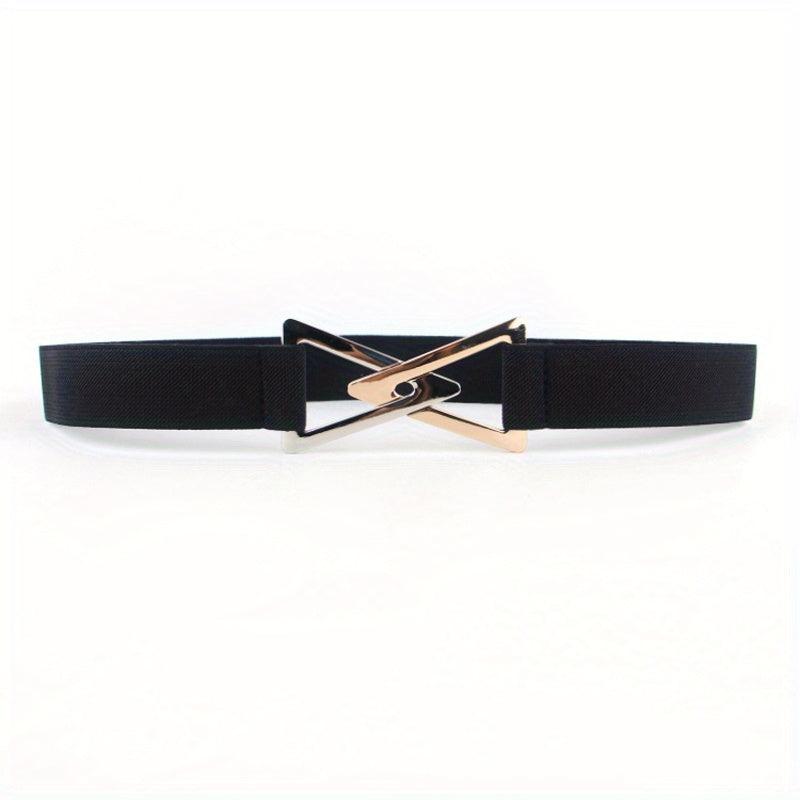 Add style to your outfits with this versatile elastic belt featuring double triangle metal buckles. Ideal for both casual and dressy occasions.
