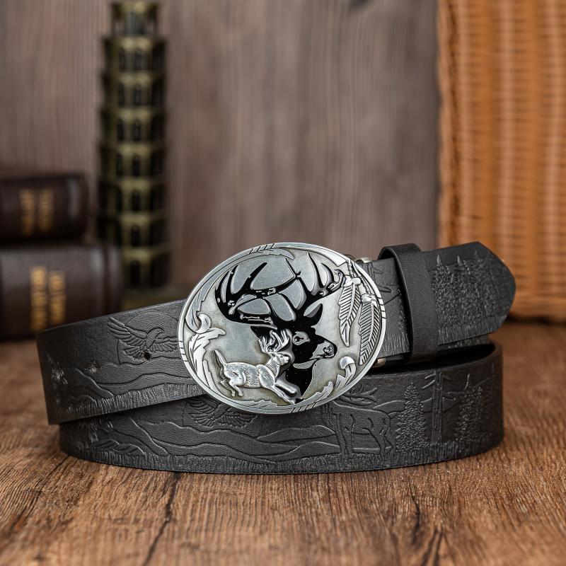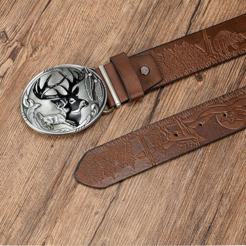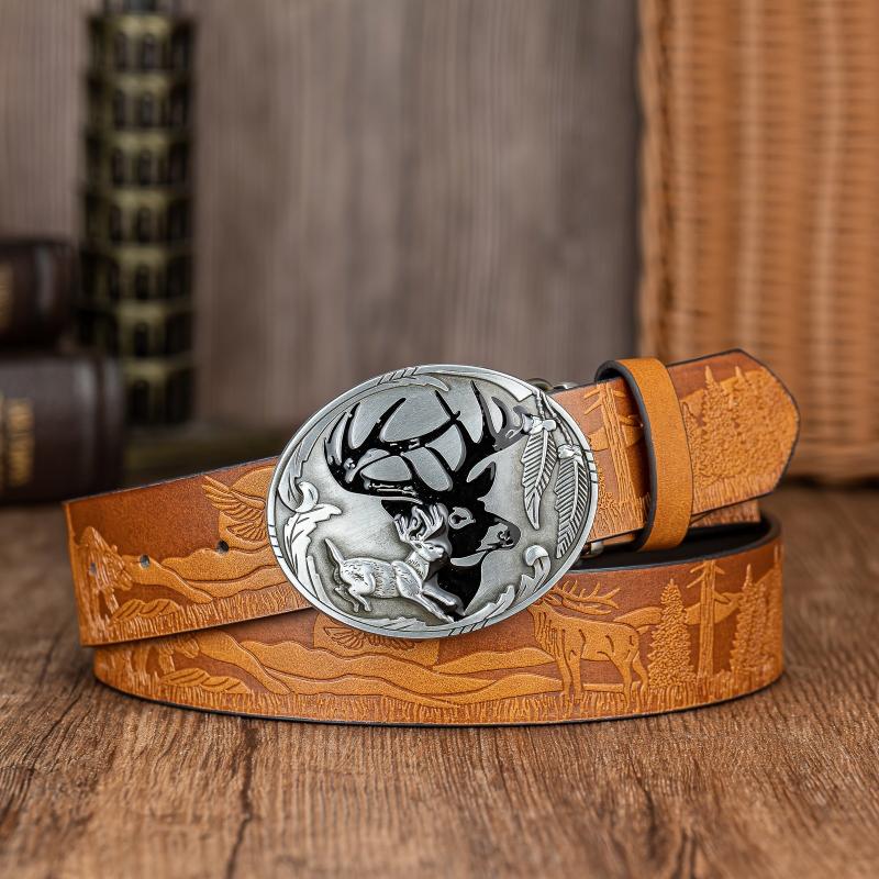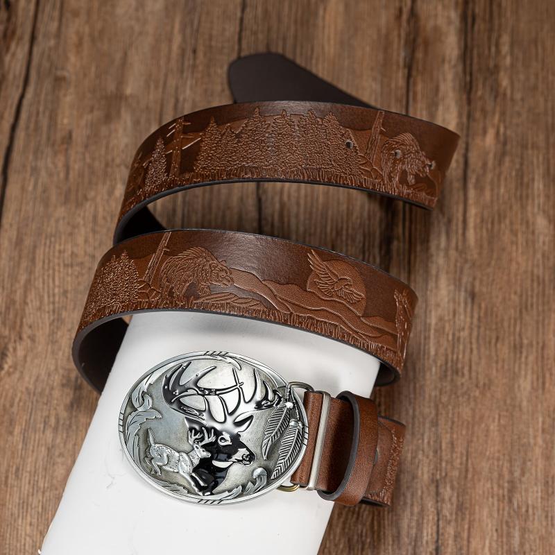 Add a touch of nature-inspired style to your outfit with this versatile oval elk shadow buckle belt. Made of high-quality PU material with an embossed design, this belt is perfect for everyday wear.