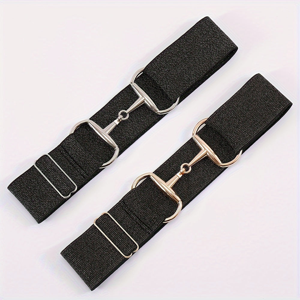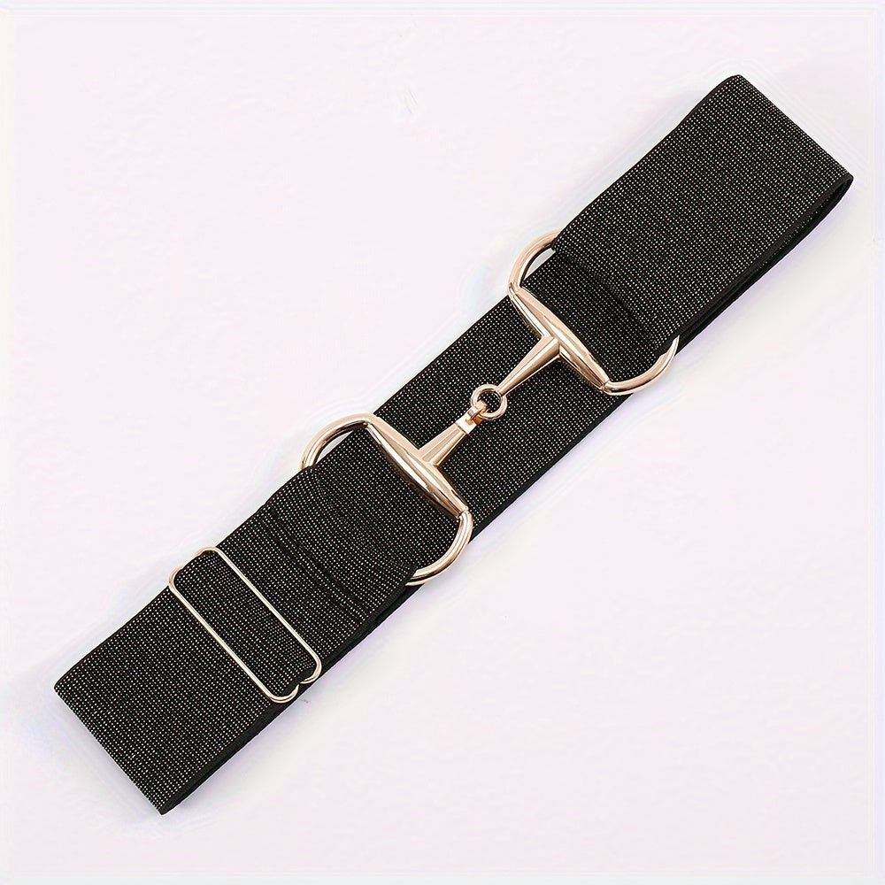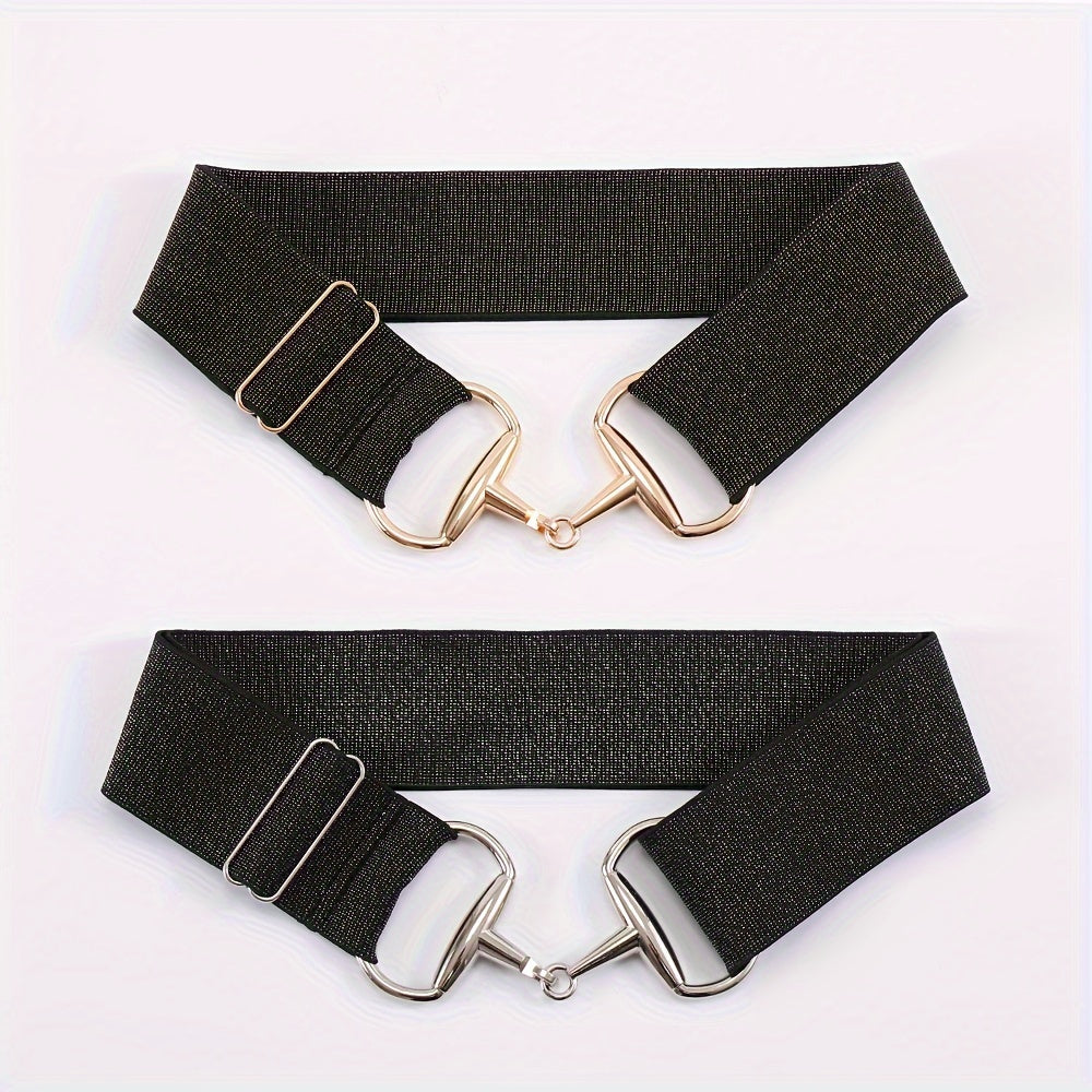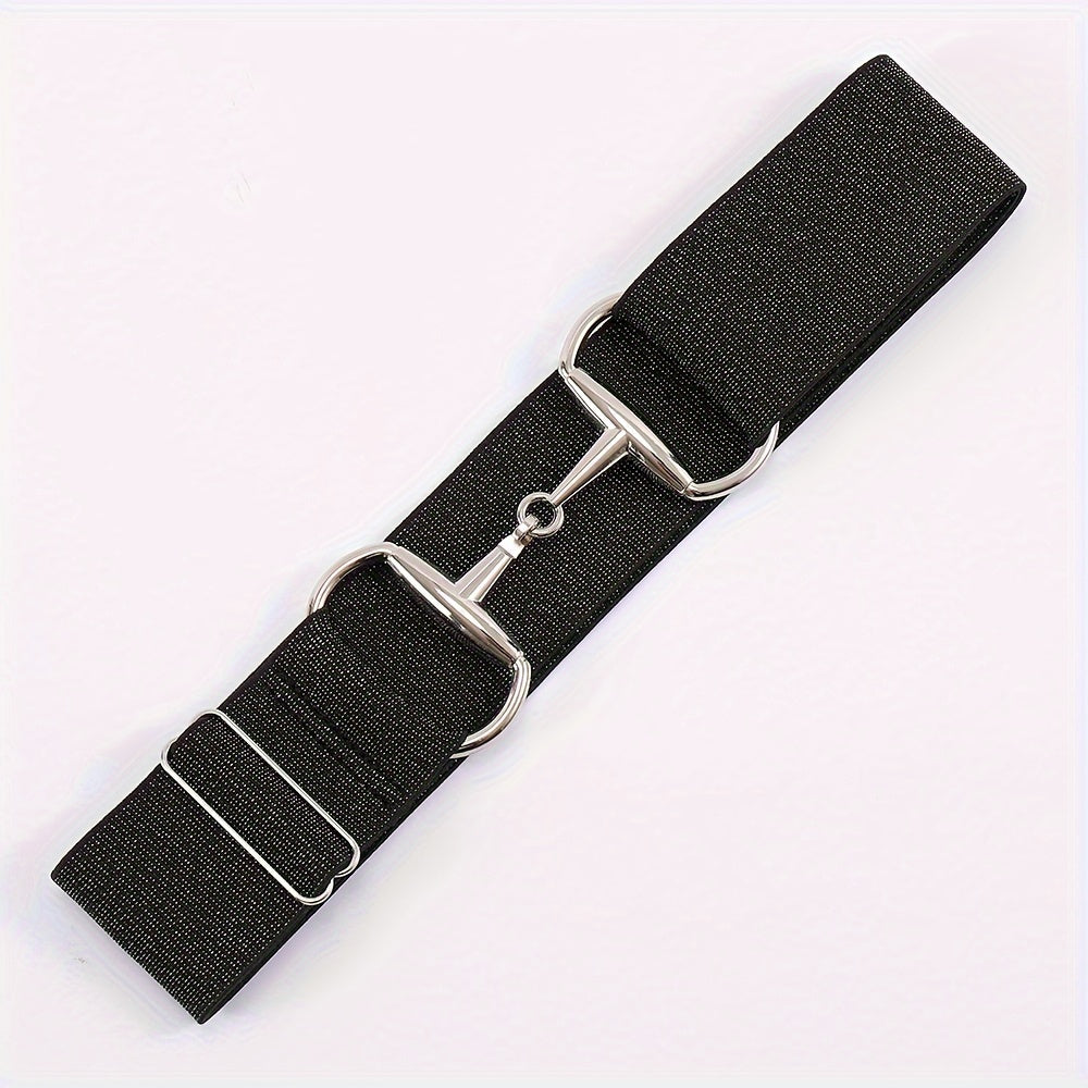 This men's and women's elastic belt features horseshoe buckles and flash elastic bands for a stylish look. Perfect for equestrian enthusiasts.