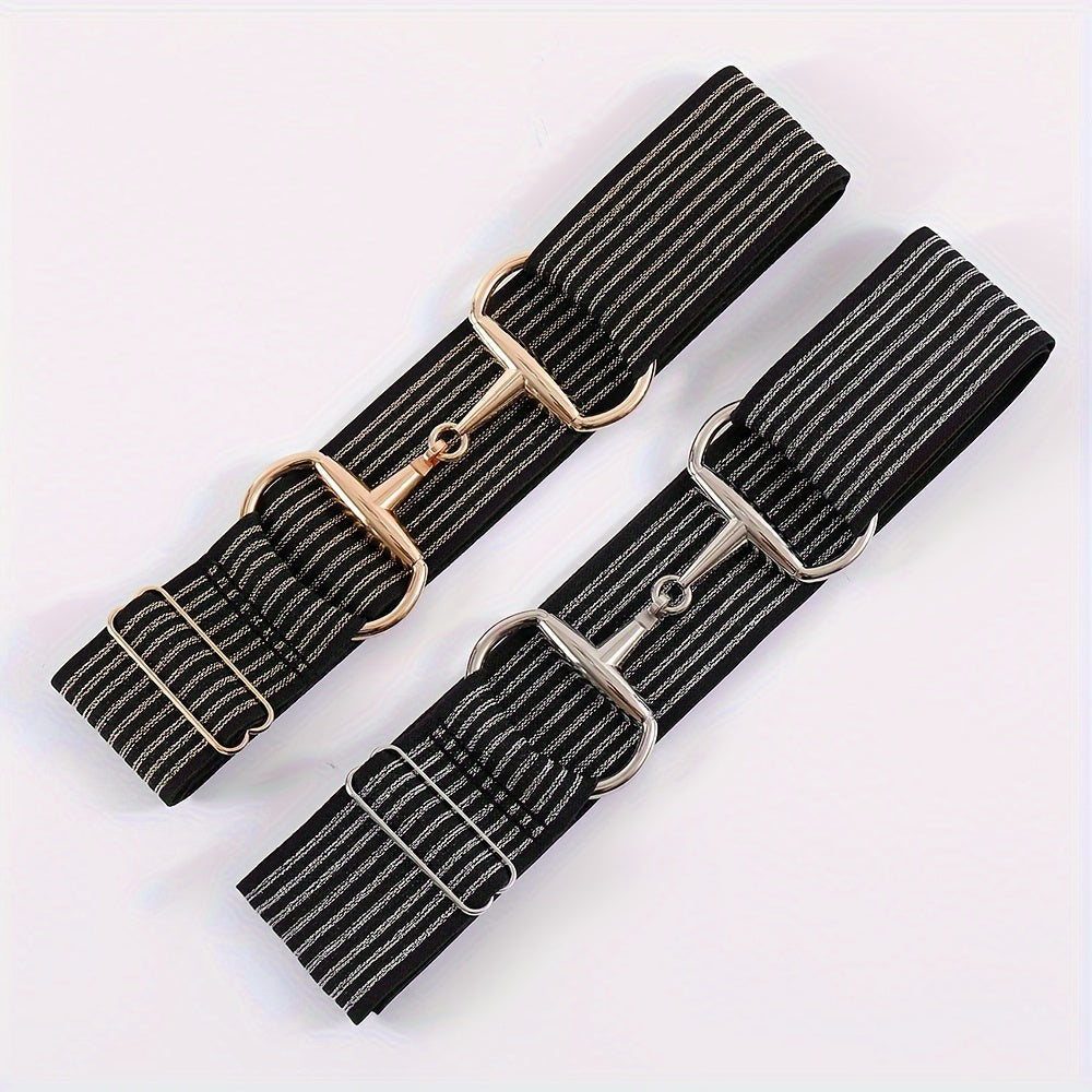 These stylish elastic belts feature a horseshoe buckle design, perfect for equestrian enthusiasts. The belts are comfortable and stretchy, making them suitable for both men and women.