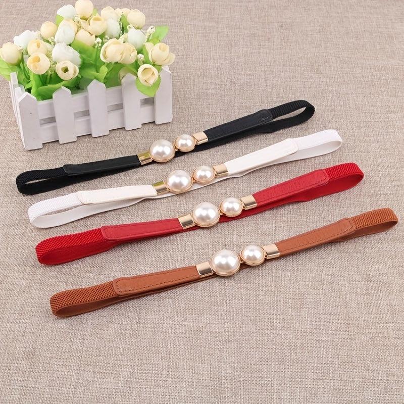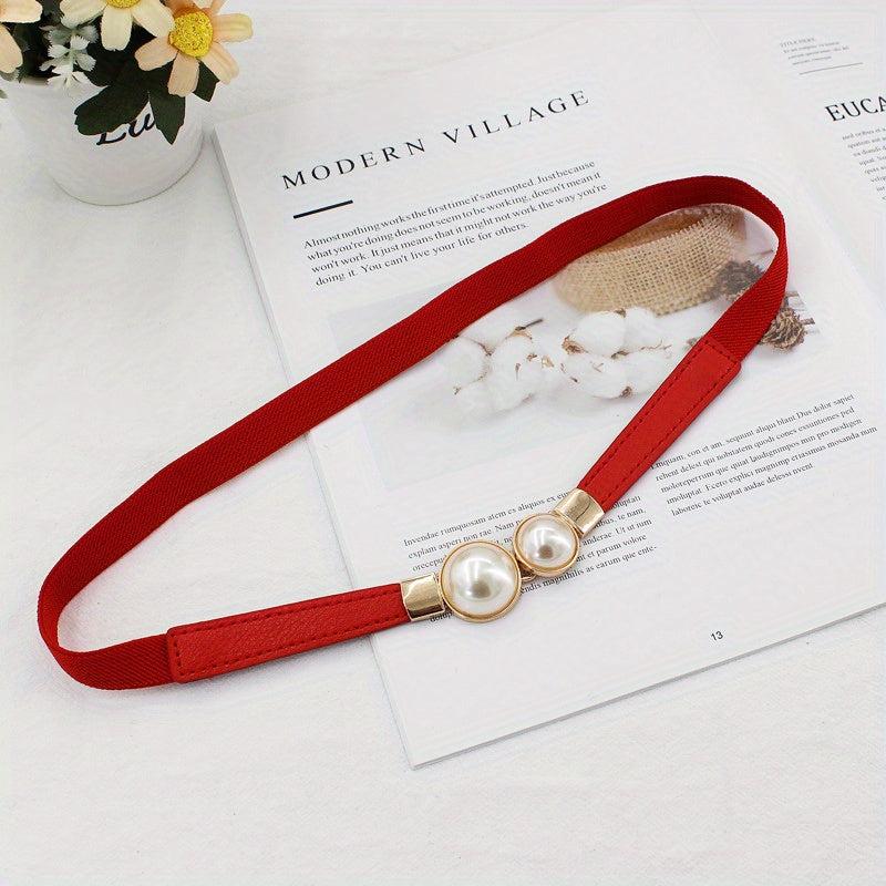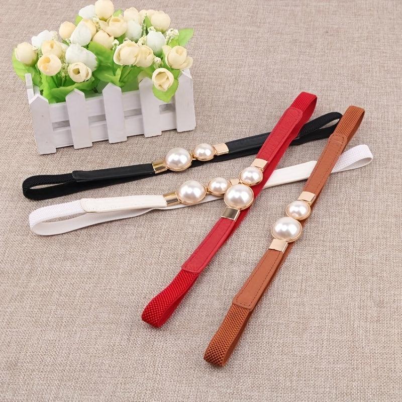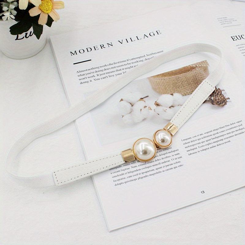 Add a touch of elegance to your outfits with this faux pearl buckle belt made of high-quality PU leather. It is perfect for both dressy and casual occasions.